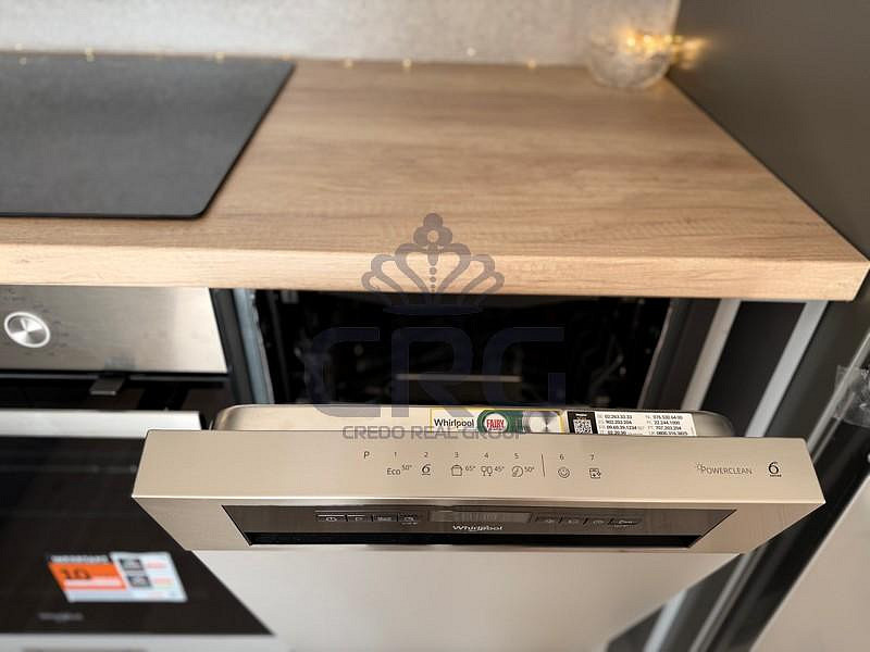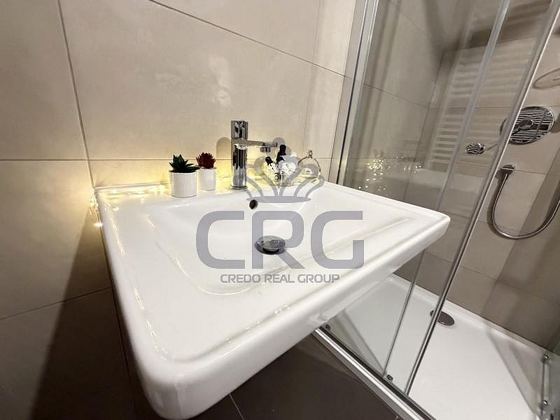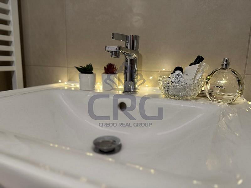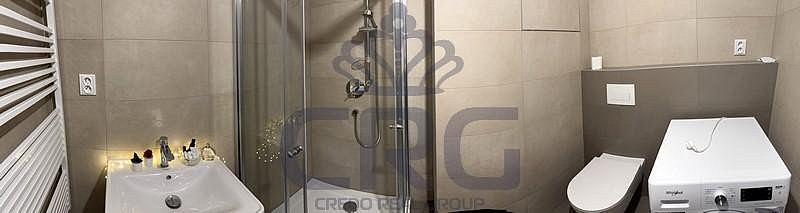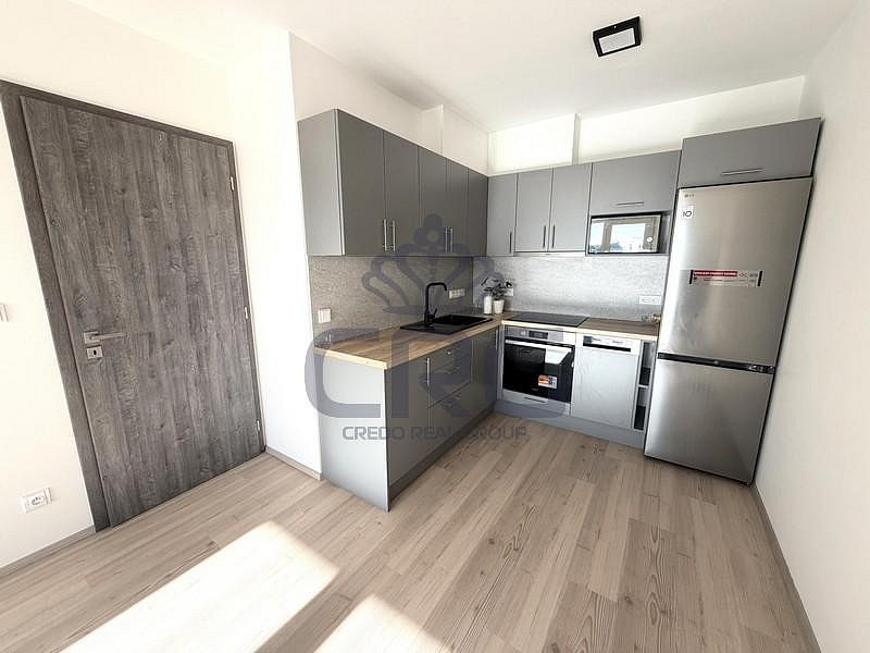 Bezpečnostními vstupními dveřmi vejdeme do prostorné chodby o výměře cca 7,1 m². Z této vedou samostatné vstupy do ostatních místností v bytě. V bytě je jedna ložnice s velkým francouzským oknem o výměře cca 12,7 m². Koupelna o výměře cca 4,3 m² je prostorná. Nalezneme zde umyvadlo, sprchový kout, WC a pračku se sušičkou značky Whirlpool. Obývací pokoj s kuchyňským koutem o výměře cca 18,7 m² je vybaven luxusní kuchyňskou linkou s vestavnými spotřebiči, jako je pečící trouba značky Whirlpool, myčka nádobí značky Whirlpool, mikrovlnná trouba značky LG, indukční varná deska značky Whirlpool, chladnička s mrazničkou značky LG a digestoř značky Whirlpool. Kuchyně poskytuje maximum úložného prostoru. Dominantou této místnosti je balkón o výměře cca 4,7 m² s výhledem do okolí.
