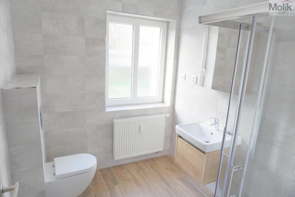 Byt je také po kompletní rekonstrukci - koupelna se sprchovým koutem, keramickými obklady a dlažbou, WC se zabudovaným modulem, umyvadlo zabudované ve skříňce, nové omítky, podlahové krytiny, vnitřní dveře, kuchyňská linka se zabudovanými elektrospotřebiči, chladnička s mrazákem atd...