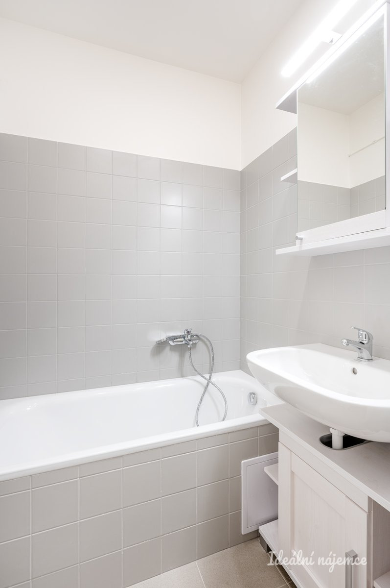 Byt se nabízí částečně vybavený. Kuchyně disponuje myčkou, troubou, varnou deskou, mikrovlnnou troubou a digestoří. Obývací část je zařízena pohovkou a zbytek pokoje je nevybavený. Ostatní pokoje jsou také nevybavené. V koupelně je vana. Toaleta je umístěna samostatně. V předsíni najdeme velkou šatní skříň.
