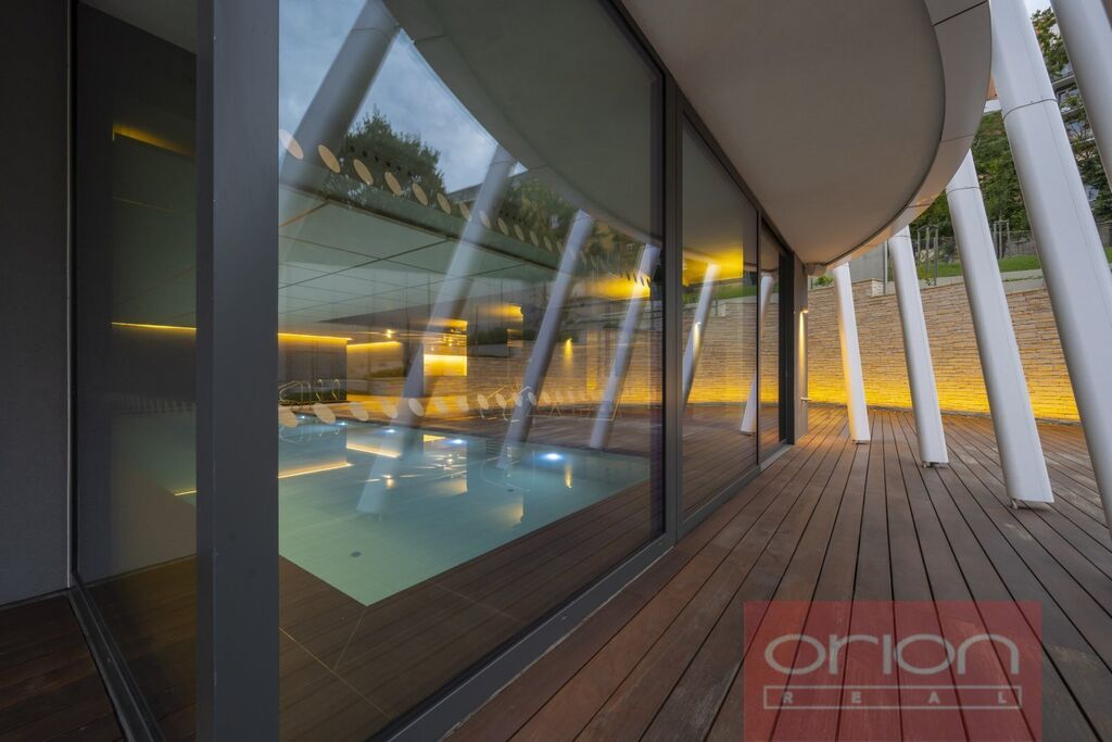 Nabízíme k pronájmu luxusní byt 2+kk s terasou v 1. patře novostavby Rezidence Ellipsis s recepcí, výtahem, podzemní garáží, wellness s bazénem a saunou, a rozlehlou zahradou s parkovou úpravou ve vyhledávané lokalitě Praha 5 - Smíchov. Zařízený byt o velikosti 78,80 m2 nabízí vstupní halu, prostorný obývací pokoj otevřený s jídelnou a plně vybavenou kuchyní, ložnici, koupelnu s vanou, sprchou, bidetem a toaletou a samostatné WC. Z obývacího pokoje a z ložnice je vstup na terasu o velikosti 9,49 m2. Součástí vybavení jsou dřevěné podlahy, velkoformátová dlažba, francouzská okna, bezpečnostní dveře, klimatizace, internet, sklep. V blízkém okolí je spousta zeleně, Kinského sady, Petřínské sady, Vltavské nábřeží. Lokalita s výborným dopravním spojením do historického centra Prahy, do nákupního centra Nový Smíchov, Německé a Francouzské školy. V pěší vzdálenosti je stanici metra a tramvaje Anděl. Nájemné, včetně poplatků, úklidu 2x měsíčně činí 2200 euro měsíčně + 12%DPH. Poplatek za garážové stání extra 200 euro + 21% DPH, poplatek za vstup do Wellness 100 euro. V přízemí budovy se rovněž nachází fitness centrum Prisma Institut, které je ideálním pro aktivní odpočinek. Byt je určen ke střednědobému pronájmu, minimální doba ubytování je jeden měsíc.