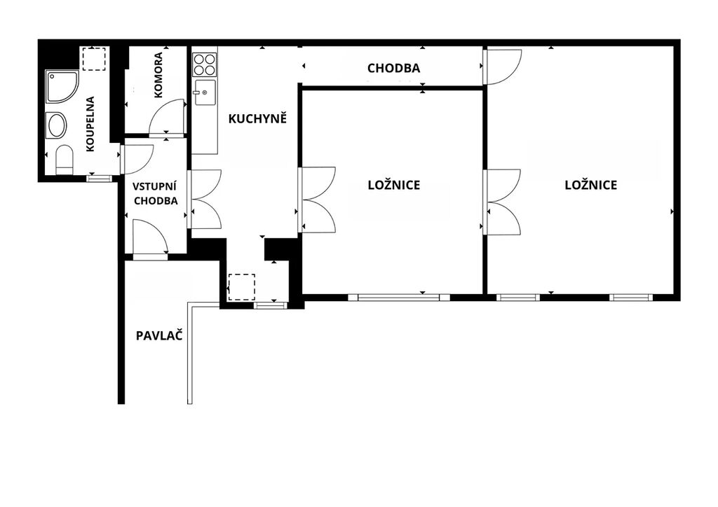 - Dva oddělené, velké a světlé pokoje s výhledem do tichého vnitrobloku – ideální pro spolubydlení, rodinu nebo kombinaci ložnice a obývacího pokoje