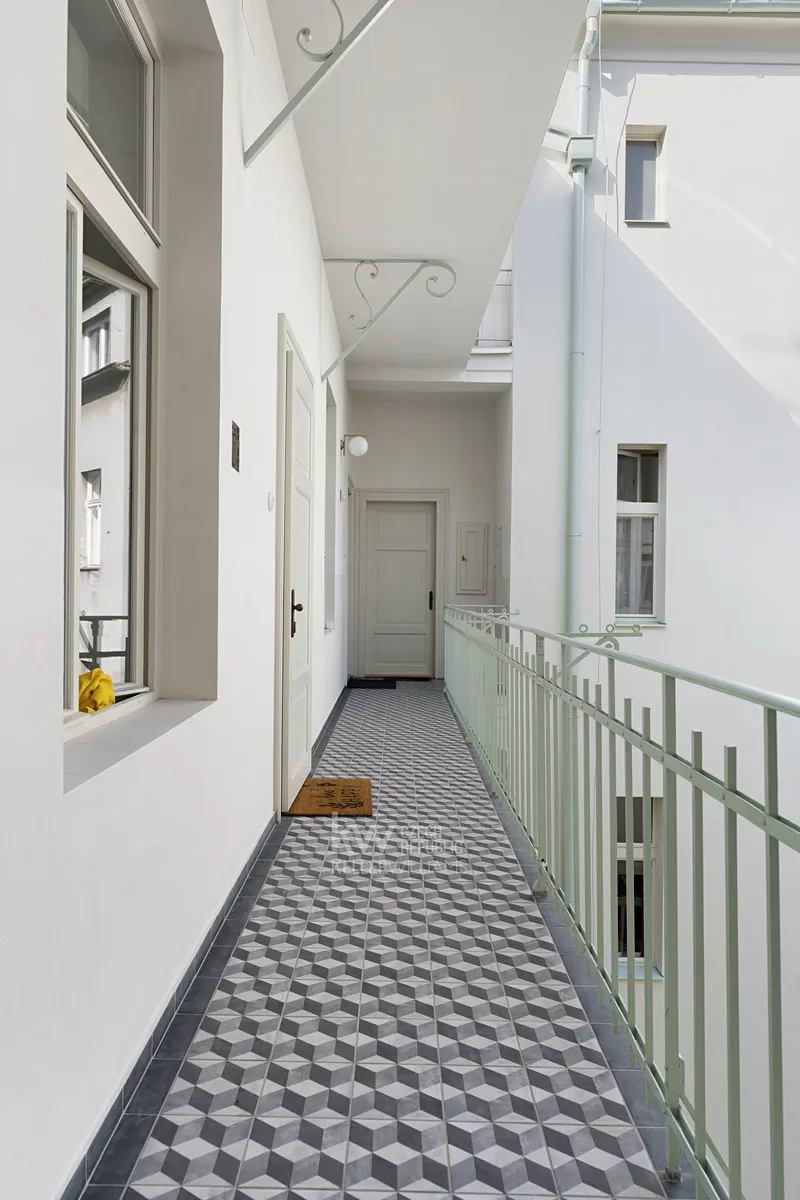 - Vstup z pavlače s jedinečným výhledem na Národní muzeum