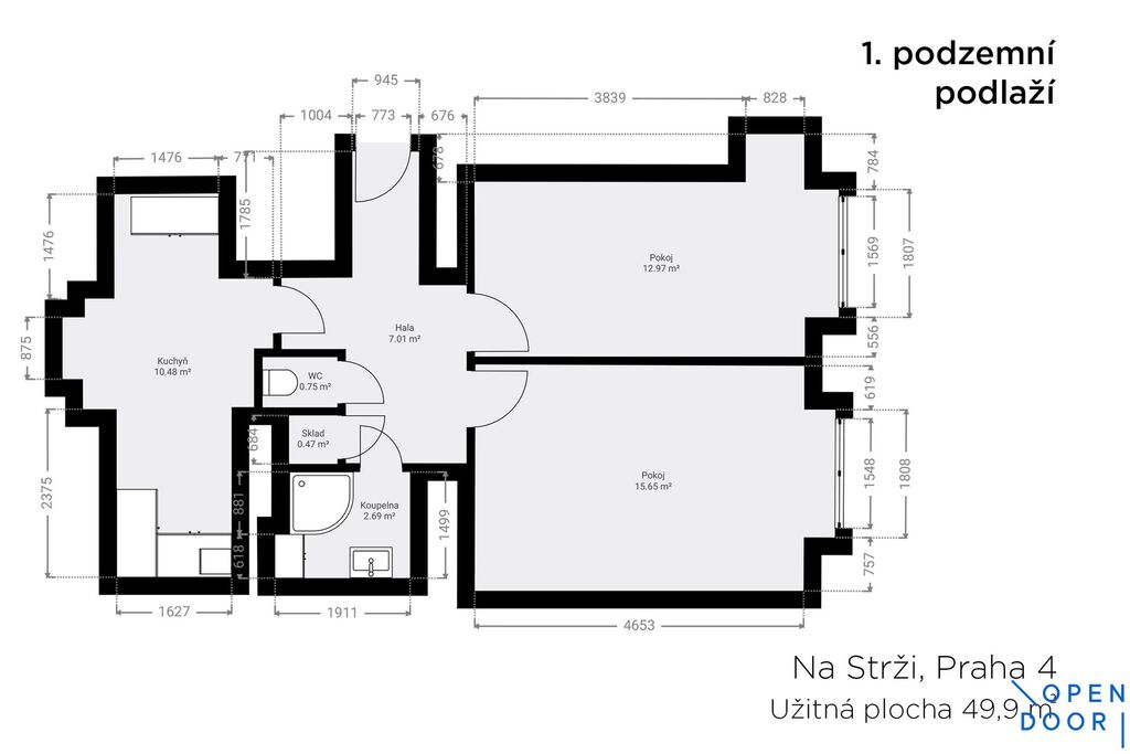 Nabízíme k pronájmu byt 2+1, po rekonstrukci o ploše cca 54 m², situovaný ve sníženém přízemí udržovaného bytového domu v ulici Na Strži, přímo u budoucí nové stanice metra „C“.