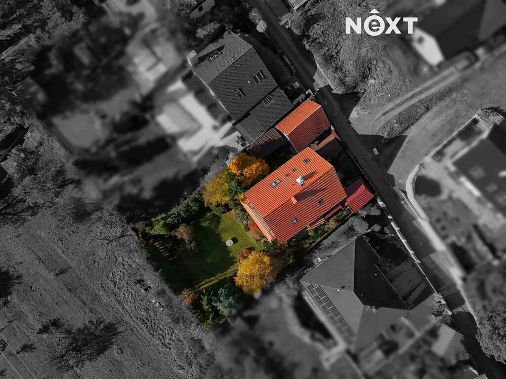 K domu náleží prostorný pozemek o výměře 935 m² se vzrostlou, pečlivě udržovanou zahradou, na které se nachází další samostatná garáž a dvě krytá parkovací stání.