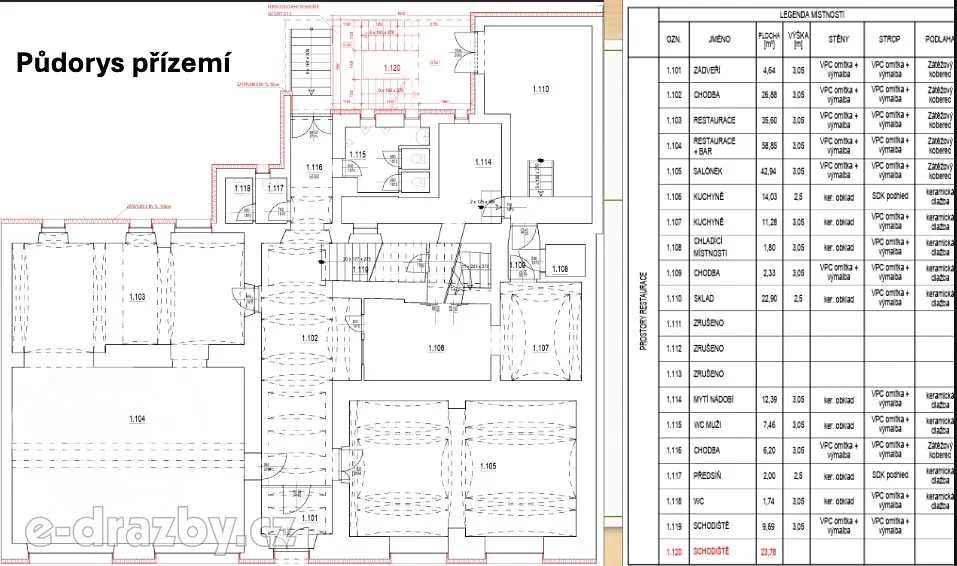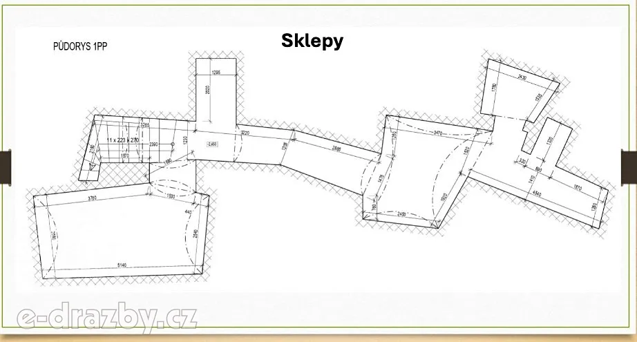 Restaurace se zázemím a salónkem v přízemí (cca 261 m2), rozlehlé sklepy (ve výhradním užívání) a velká půda (cca 165 m2, rozvody připraveny, možná 2 podlaží) a 2 parkovací místa v zadní části