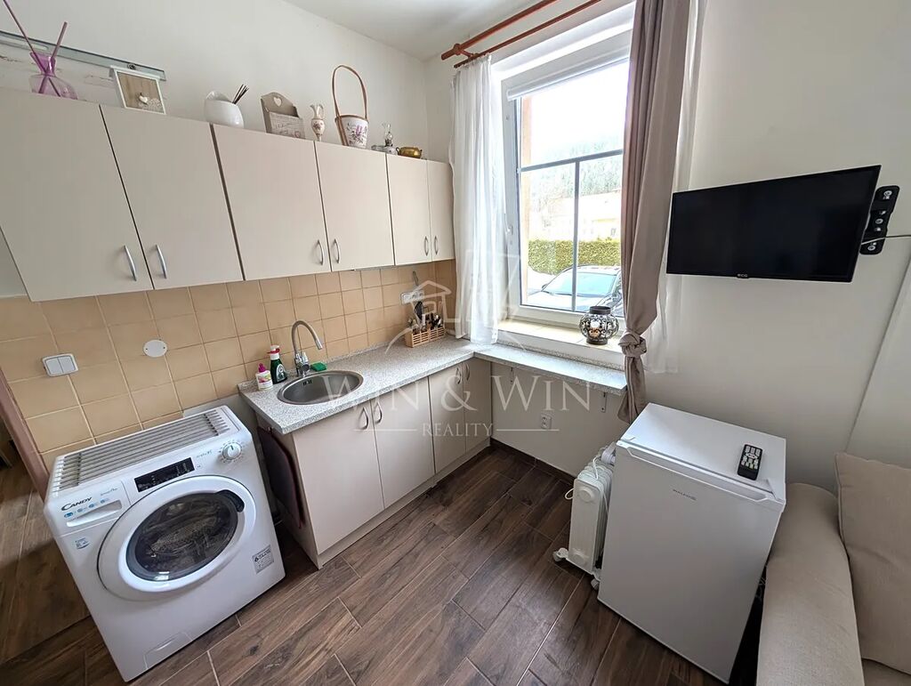 Nabízíme k prodeji nově zrekonstruovaný apartmán 1+kk o velikosti 25 m², nacházející se v apartmánovém domě v obci Kořenov. Apartmán je ideální volbou pro ty, kteří hledají klidné místo k rekreaci či trvalému bydlení. Zároveň může být vhodnou investicí s možností úspěšného pronájmu. Majitelé ostatních apartmánů v domě využívají ekonomický potenciál krátkodobých nájmů přes webové servery jako je Booking apod. Apartmán se nachází v Chráněné krajinné oblasti Jizerské hory, v těsném sousedství Krkonoš. V jeho okolí je mnoho příležitostí pro rekreační aktivity, což z něj činí atraktivní destinaci pro turisty po celý rok. Děti mohou mimo jiné využít společného hřiště, ohniště nebo se v nedalekých Příchovicích projet na koni.