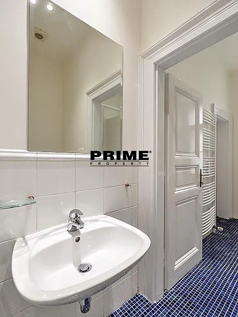 Zrekonstruovaný, 2 ložnicový, nezařízený mezonetový byt se 2 koupelnami k pronájmu, vhodný také ke klidnému kancelářskému provozu, 3+kk, 118m2, s malým balkonem a s možností pronájmu garáže, situovaný v 1. patře a přízemí zrekonstruovaného secesního bytového domu s výtahem (dvě místnosti směřují do klidného vnitrobloku).
