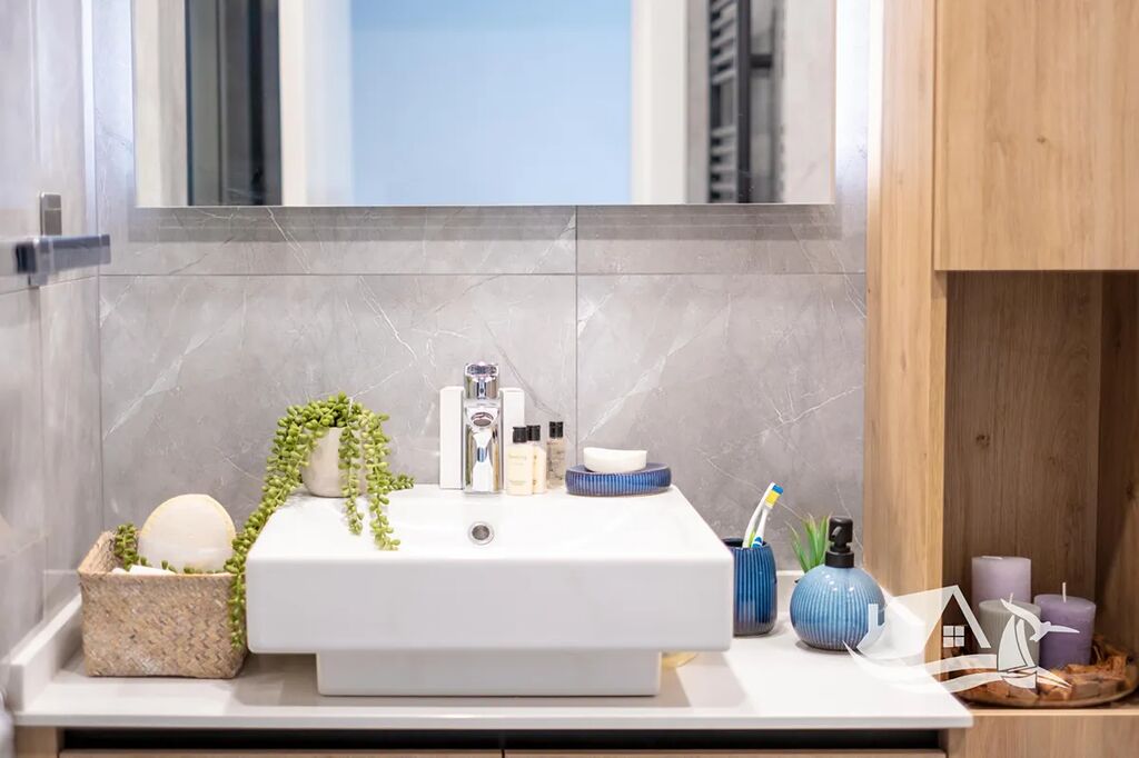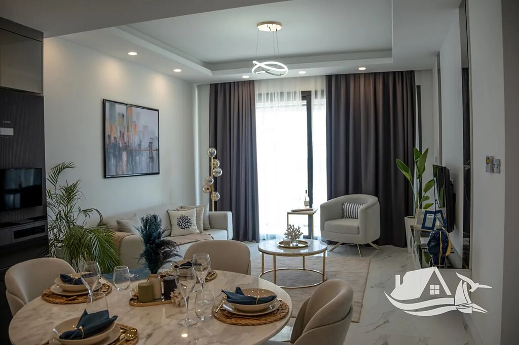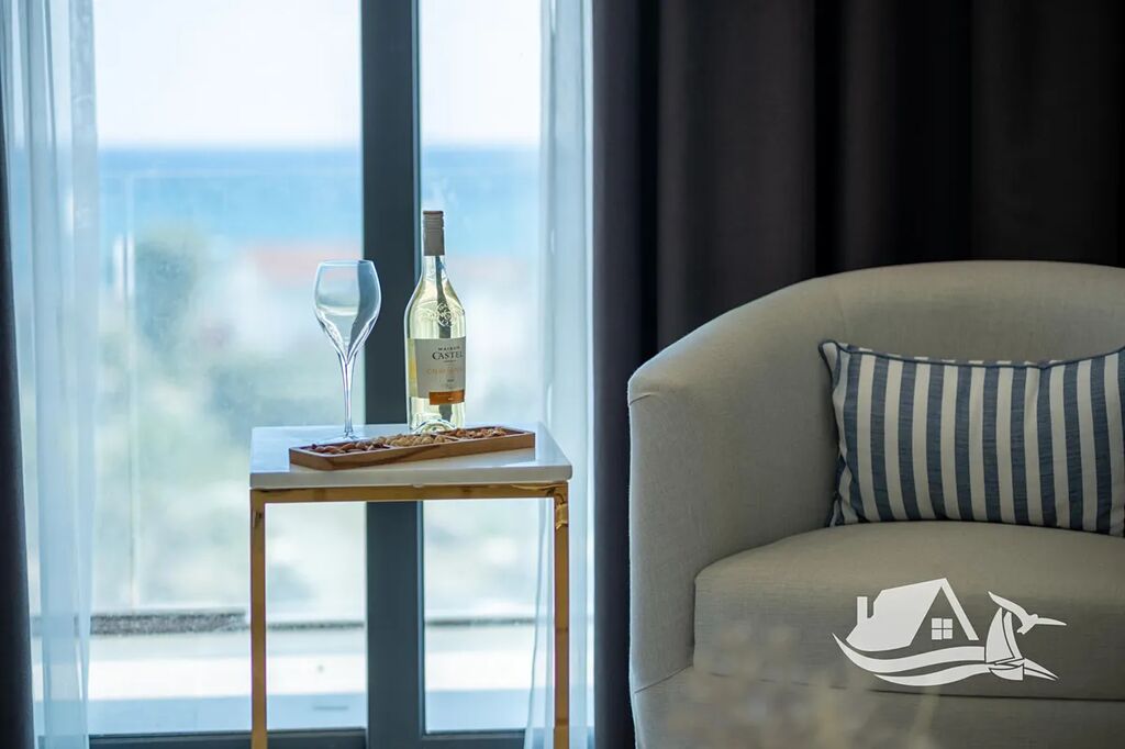 Moderní apartmán 3+kk s balkonem a krásným výhledem na moře a bazén. Nachází se jen pár kroků od pláže, nabízí soukromou pláž, venkovní bazén, fitness, sky bar a barbecue zónu.