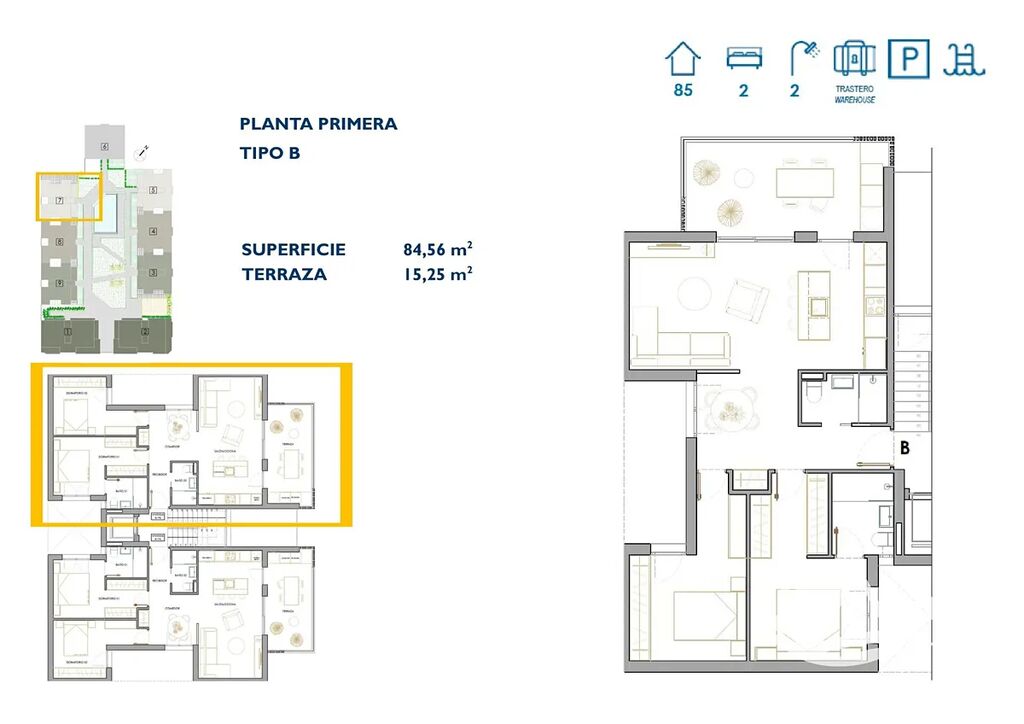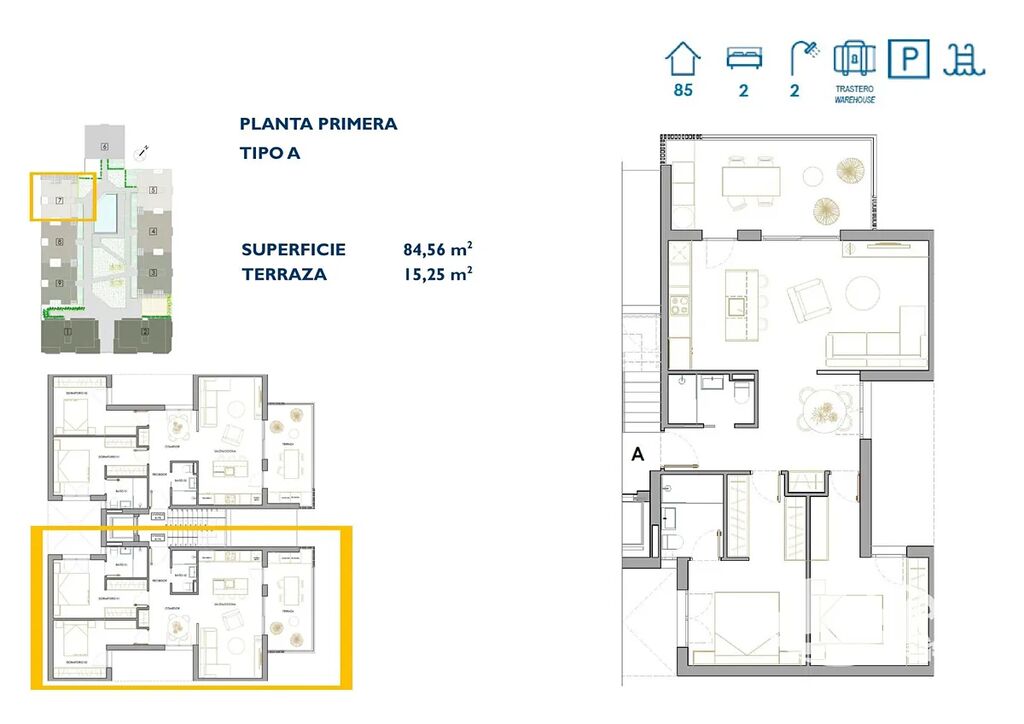 Jen 2,5 km od pláže, v blízkosti obchodů, restaurací a známých lázní s léčivým bahnem Mar Menor. San Pedro del Pinatar nabízí přístav, sportovní areály, přírodní rezervace, cyklostezky i bohaté kulturní dění po celý rok. Výborná dopravní dostupnost – letiště v Murcii 30 minut, Alicante hodinu jízdy.