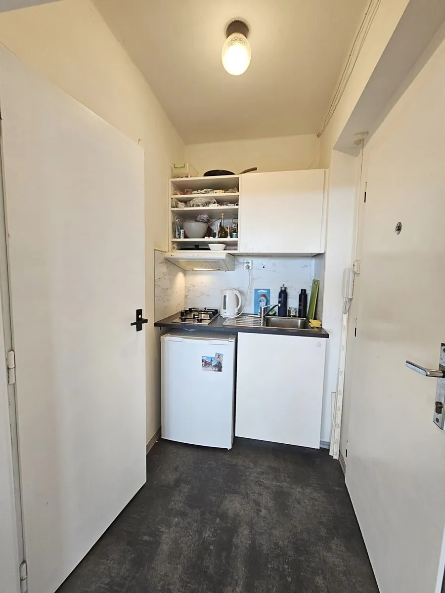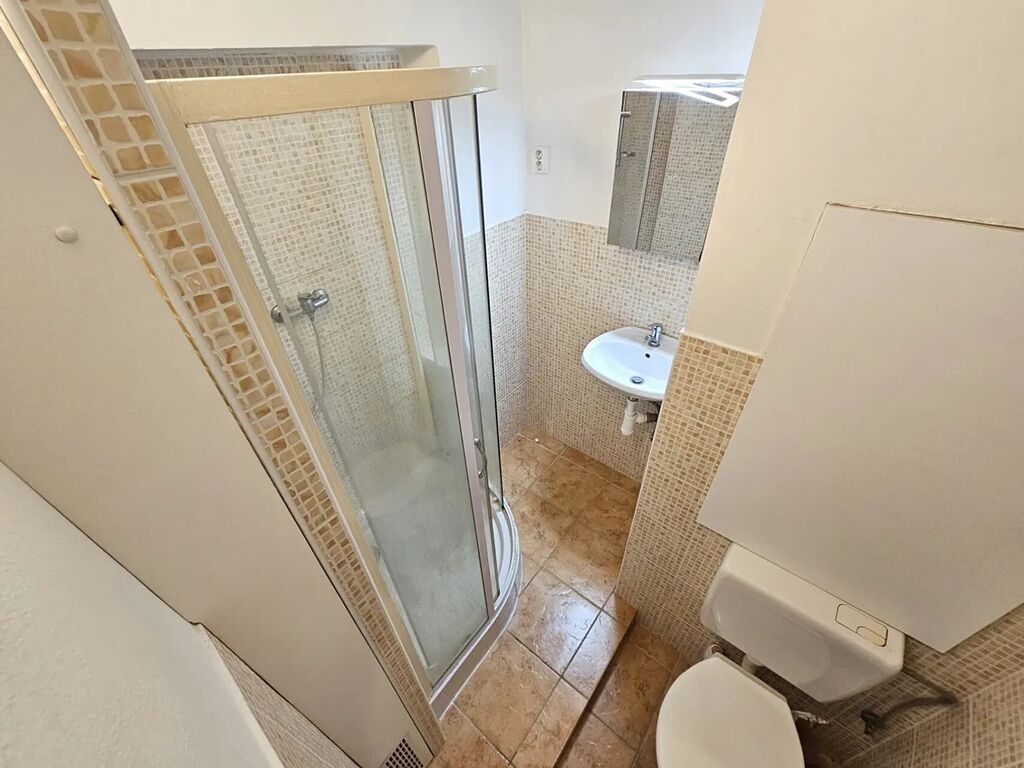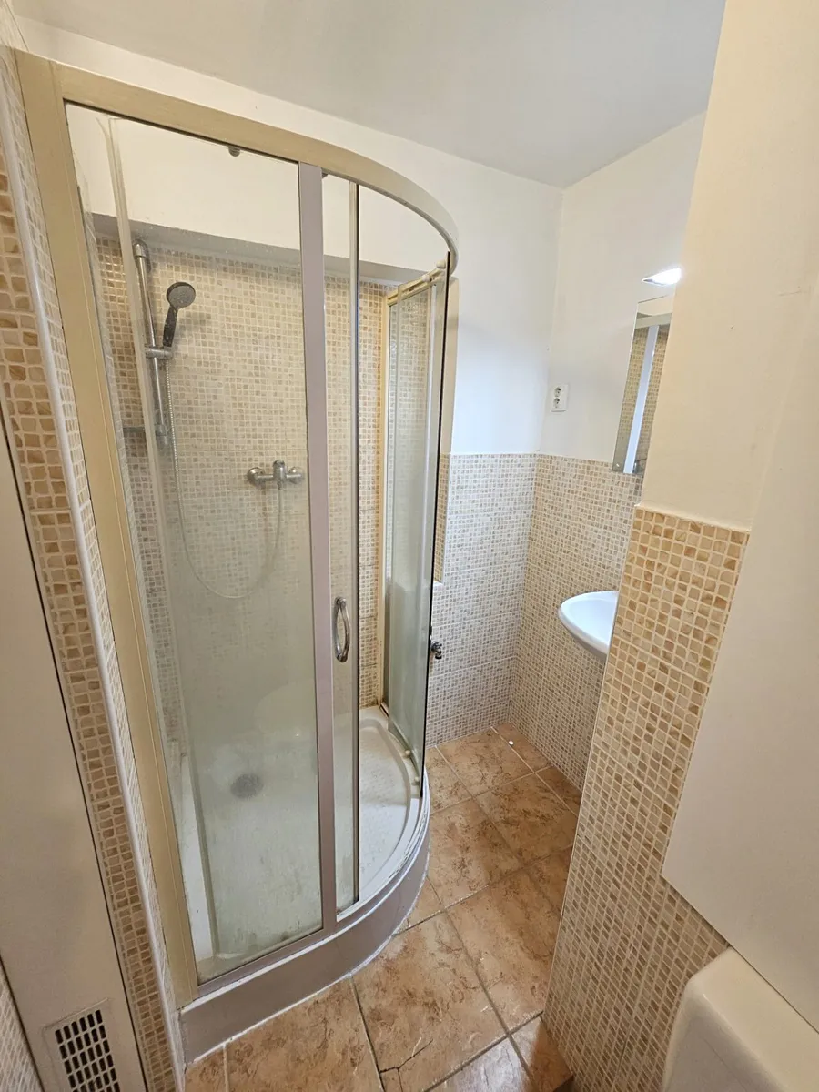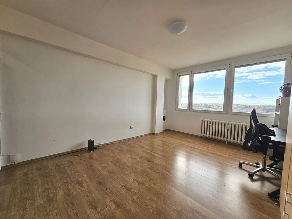 V bytě se nachází pokoj (17 m2) + menší kuchyňka s vestavěnou plynovou dvouplotýnkou, lednicí a digestoří + koupelna se sprchovým koutem a místem na pračku.