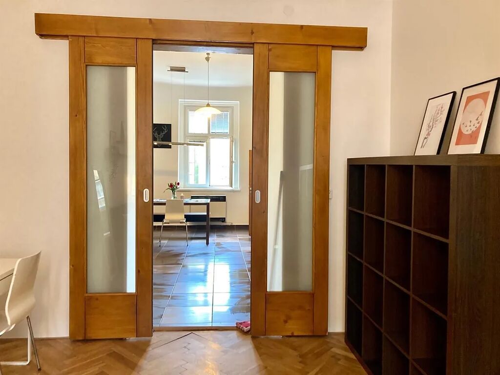 Nabízíme dlouhodobý pronájem zařízeného bytu 2+1 v centru Prahy blízko Národního Muzea Nové město, ulice Rumunská. Byt po kompletní rekonstrukci plně zařízen s moderním designovým nábytkem. Dispozice předsíň se vstupem do kuchyně s jídelnou a koupelny. Z kuchyni vstup do obývacího pokoje a skrz obývací pokoj malá ložnička, kde je šatna, dvoulůžko 180 cm a patro pro návštěvy. Kuchyňská linka se spotřebiči vč. myčky, pračky, vestavěná skříň, šatna a nábytek v ložnici a v předsíni. Byt hodný maximálně pro tichý a klidný pár, bezúhonní. Dům po rekonstrukci, nová okna, střecha, výtah. Volný od 26.12.2025, pouze pro nekuřáky a bez zvířat. Skládá se kauce a provize. Poplatky k nájmu 2.000Kč/dle počtu osob + elektřina/plyn. Prohlídka dohodou.
