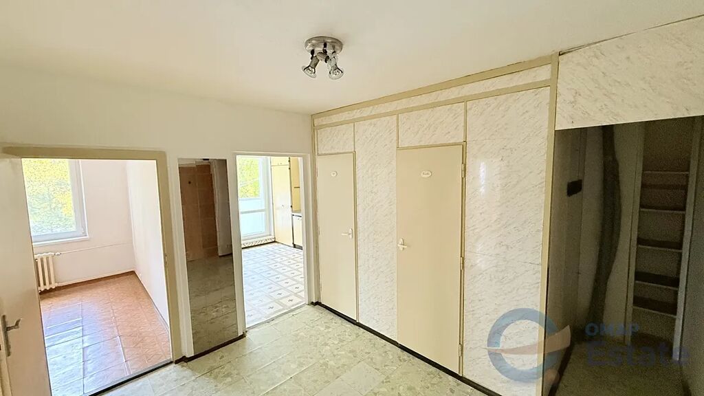 Byt má praktickou dispozici. Ze vstupní prostorné haly se vchází do samostatné koupelny, WC a komory. Na vstupní halu navazuje velká kuchyně se vstupem na lodžii s výhledem do klidného vnitrobloku. Z chodby jsou dále vstupy do tří pokojů. Díky této dispozici je byt vhodný i pro rodinu s dětmi nebo jako investice na pronájem.