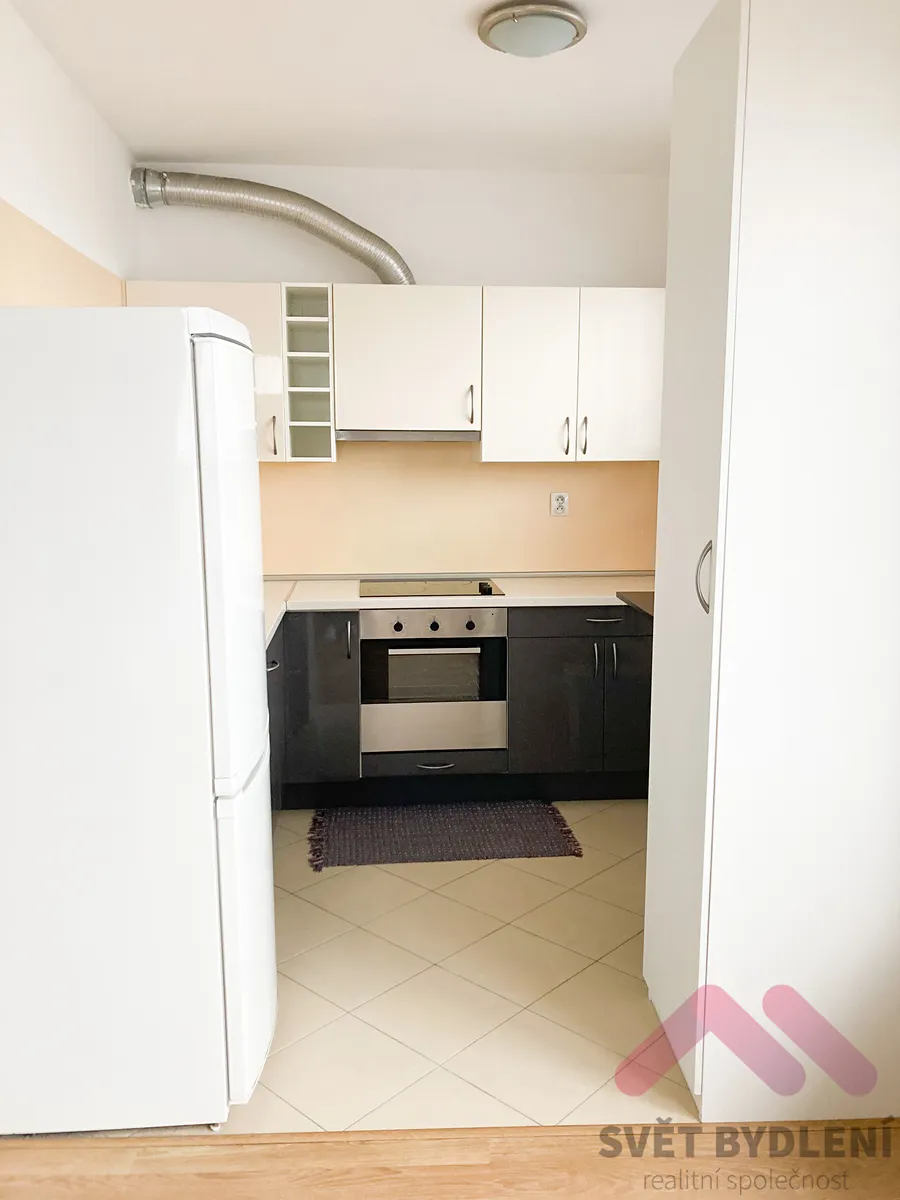 Ve výhradním zastoupení majitele nabízíme byt 1+kk, který se nachází v 8. patře cihlové novostavby. Byt je částečně zařízený: kompletní kuchyňská linka vč. myčky, lednice, sklokeramické varné desky s troubou, jedna menší skříň v předsíni, botník, v koupelně skříňka se zrcadlem, pračka a WC zvlášť. Postel která je na fotografiích není součástí vybavení ale je možné ji za dobrou cenu odkoupit od současného nájemce. K nastěhování volné od 1.12. K bytu náleží vlastní parkovací stání v podzemní garáži a sklep. Cena 16.900Kč + 2.800Kč záloha na služby (vytápění, voda, úklid domu, výtah, apod..) + elektroměr se převádí na nájemce (spotřeba cca. 1.000Kč)