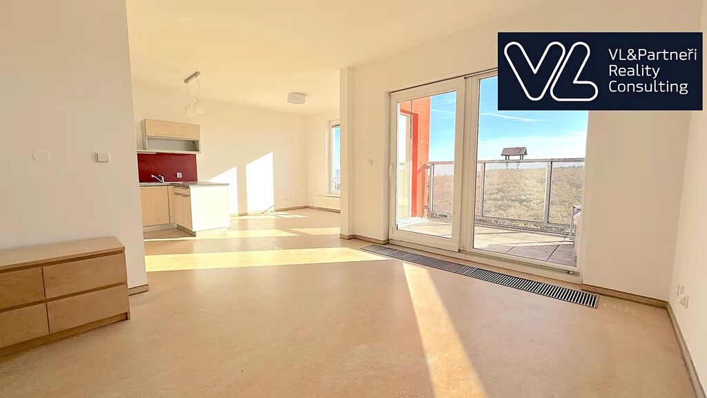 Dominantou bytu je prostorný obývací pokoj s kuchyňským koutem a přímým vstupem na lodžii, která poskytuje ideální místo pro odpočinek i posezení s výhledem. Moderní kuchyňská linka je vybavena vestavěnými spotřebiči – troubou, varnou deskou, myčkou, mikrovlnnou troubou, lednicí a digestoří. Součástí bytu jsou dále dva samostatné pokoje, koupelna s vanou, toaletou a bidetem a prostorná předsíň s dostatkem úložného prostoru. Byt je částečně vybaven.Parkování je možné přímo u domu na veřejných stáních.
