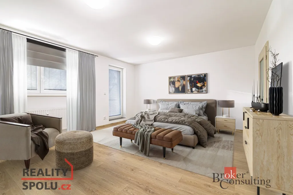 Druhý menší balkon, je přístupná z hlavní ložnice, která disponuje vlastní koupelnou a samostatnou šatnou – ideální řešení pro každého, kdo si potrpí na soukromí a komfort.