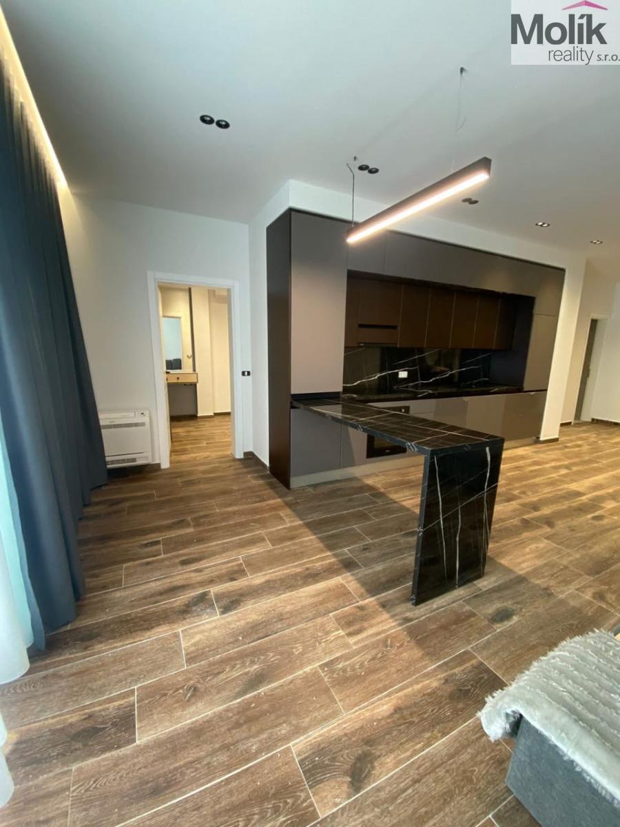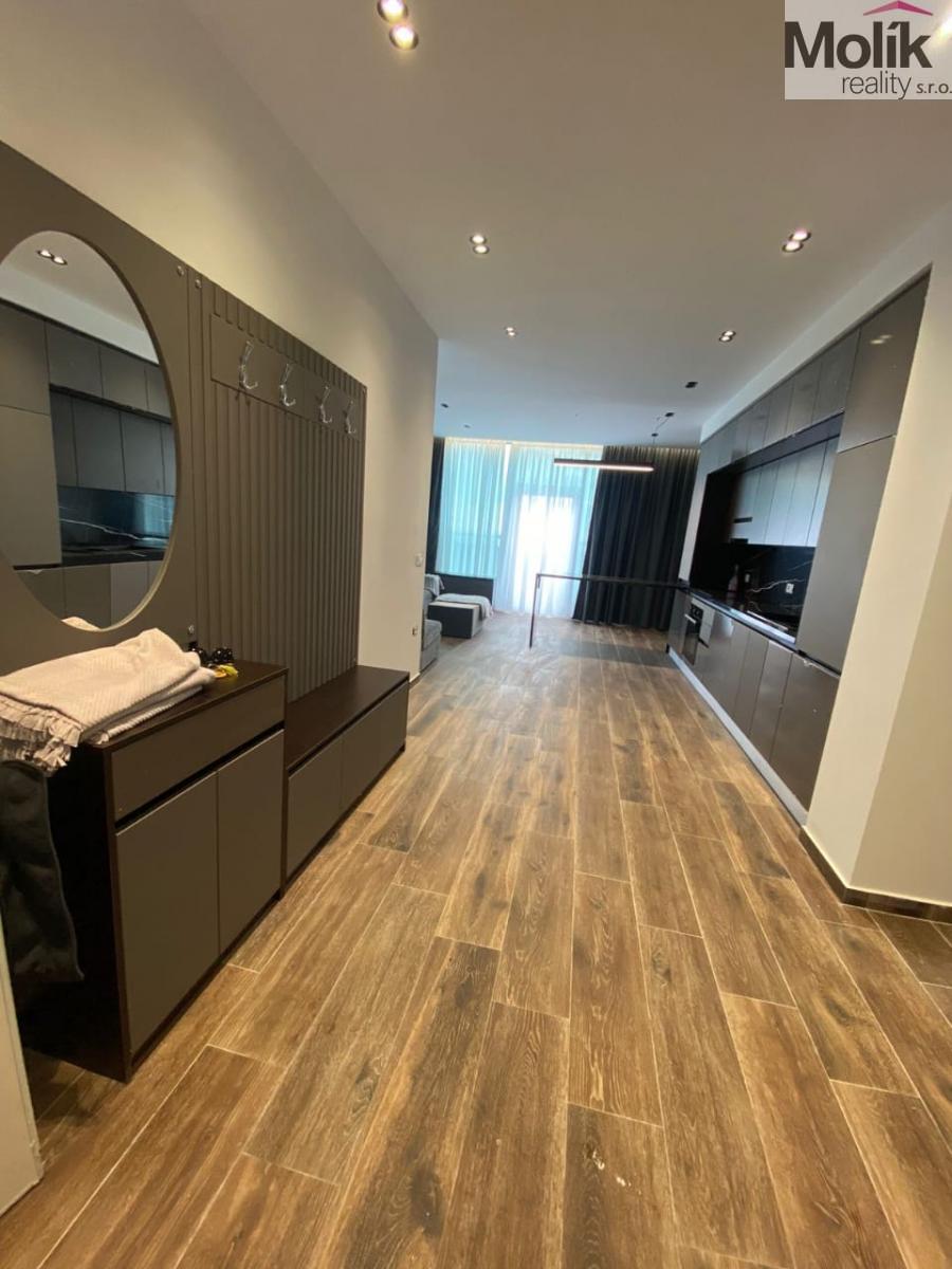 Celý prostor působí harmonicky, svěže a exkluzivně, s důrazem na každý detail. Kvalitní podlahy, klimatizace, moderní kuchyňské vybavení a promyšlené úložné prostory jsou samozřejmostí.