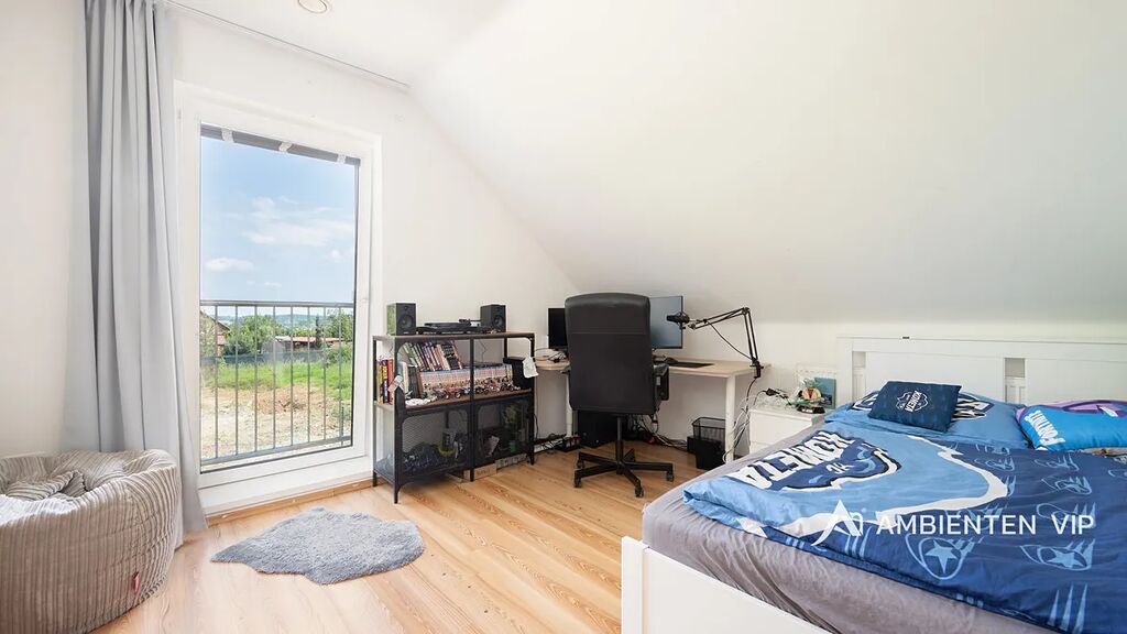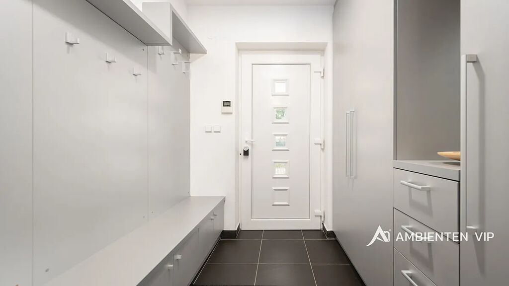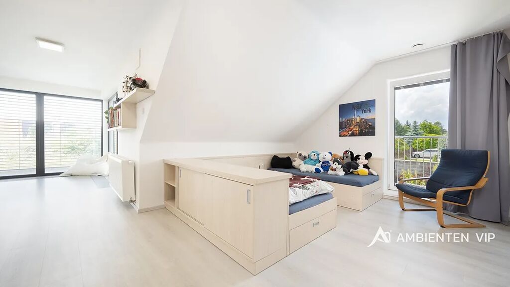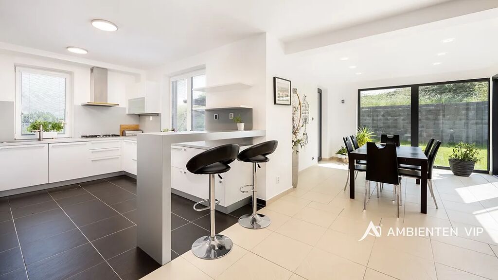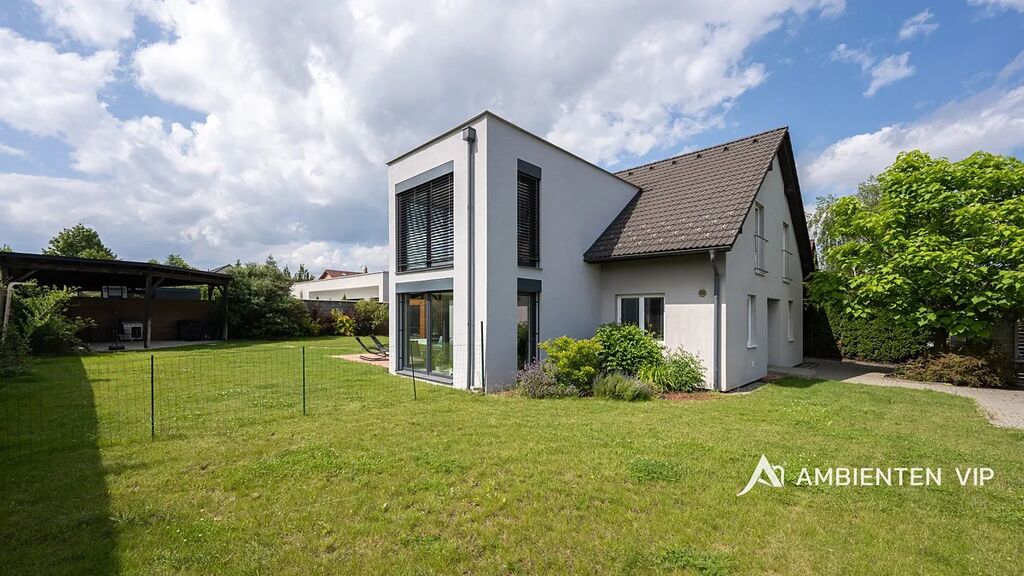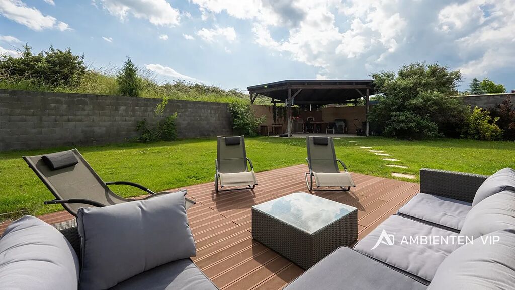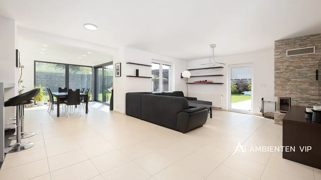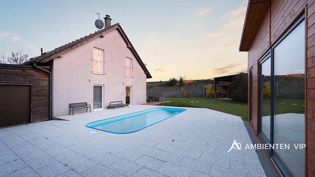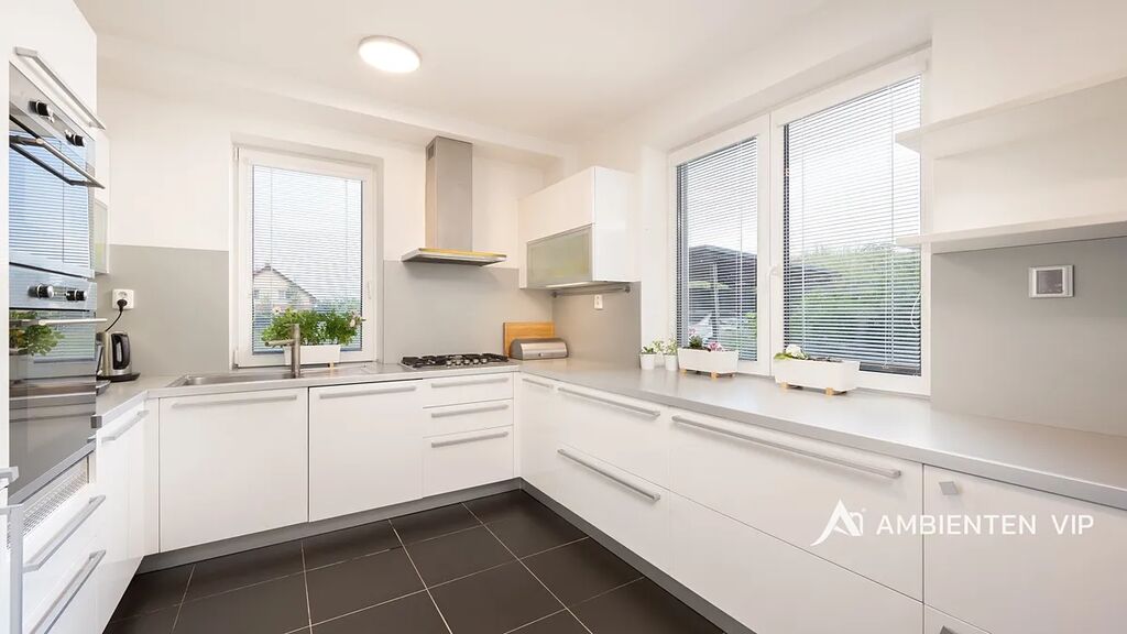 AMBIENTEN VIP si Vám dovoluje exkluzivně nabídnout prodej prostorného samostatně stojícího rodinného domu o dispozici 5+kk se zahradou, bazénem, zahradním domkem a s možností parkování až 6 vozů na vlastním pozemku v obci Popůvky. Celková užitná plochu domu činí 209,66 m² a plocha pozemku 1282 m².