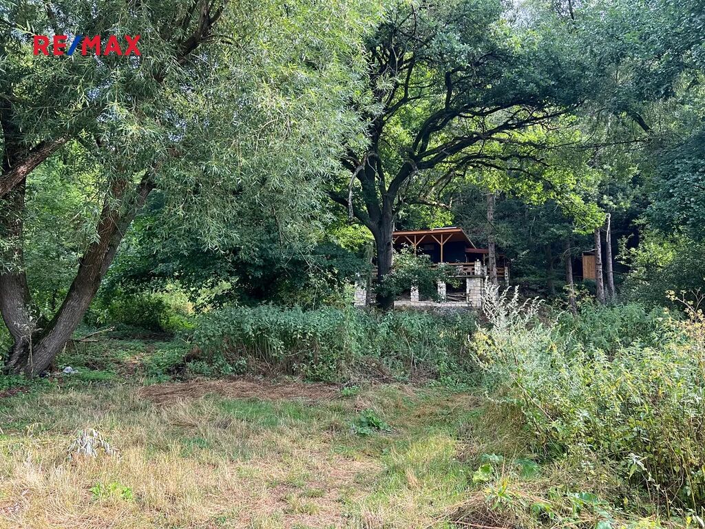 Vlastněný pozemek pod chatou je 56 m2, spoluvlastnický podíl na okolních pozemcích je 1/13 z rozlohy 70 148 m2, tedy 5 396 m2. A součástí prodeje je též věcné břemeno na pozemcích obce Zbečno.