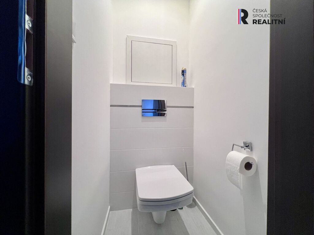 V koupelně je vana a dvě vestavěné skřínky. V ložnici a v chodbě je velká vestavěná skříň na míru i s bodovými světly.