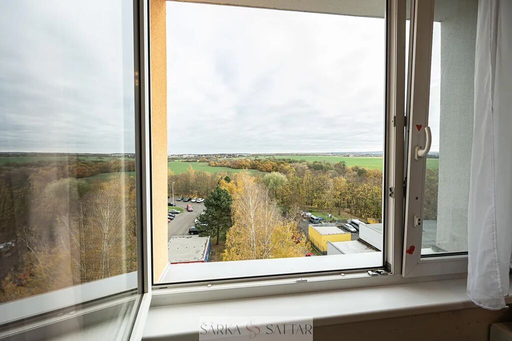 Z bytu je krásný výhled do okolní zeleně Prahy 10 - Petrovic směrem na retenční nádrž či Mlýn na Dobré vodě.