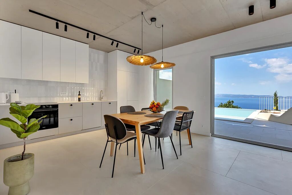 Nabízíme k prodeji polovinu moderní vily v obci Horní Podgora, s užitnou plochou 210 m². Dům se nachází cca 3 km od pobřeží a nabízí klidné prostředí s výhledem do krajiny a na moře.