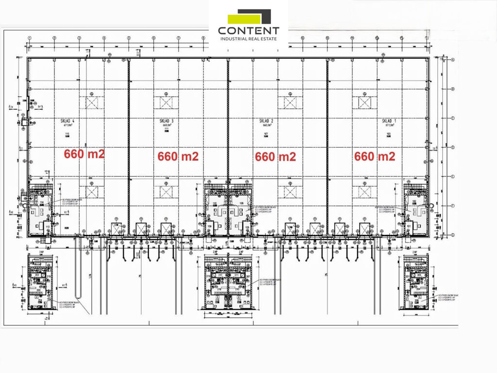 Cena nájmu za skladové plochy je EUR 7/m²/měsíc, kanceláře a sociální zázemí EUR 10/m²/měsíc + služby.