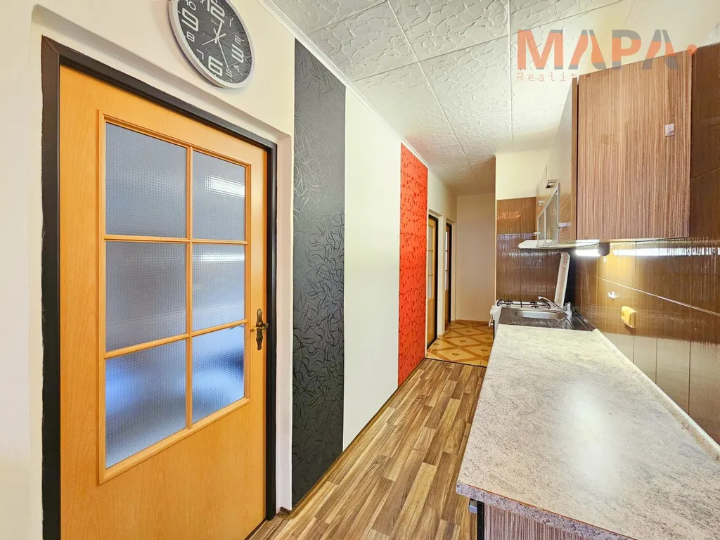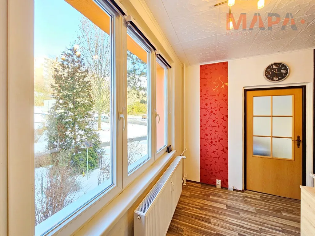 Nachází se v 1. zvýšeném nadzemí čtyřpodlažního domu v oblíbené části Jirkova, v ulici Pod Přivaděčem. Tento družstevní byt má dispozici 3+1 s celkovou plochou 64,4 m. Před časem již prošel částečnou rekonstrukcí koupelny a jiných částí bytu. Velký obývací pokoj disponuje širokou zasklenou lodžií, která dodává bytu příjemnou atmosféru a klid. Dům je po revitalizaci, má hotovou fasádu, plastová okna, velmi čisté a udržované společné prostory, jelikož zde bydlí převážně majitelé, kteří se o něj příkladně starají.