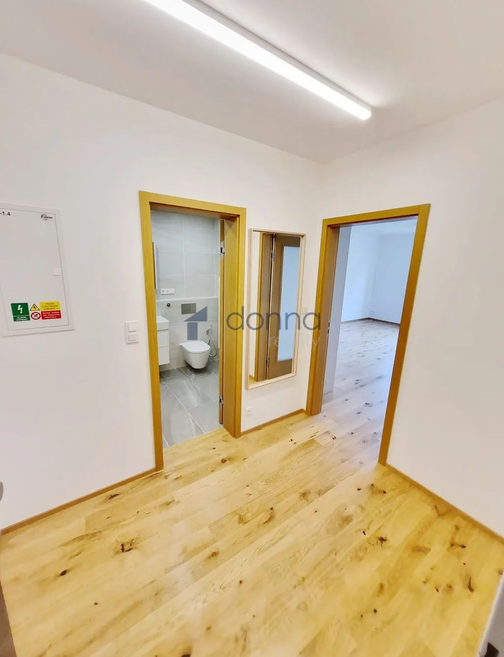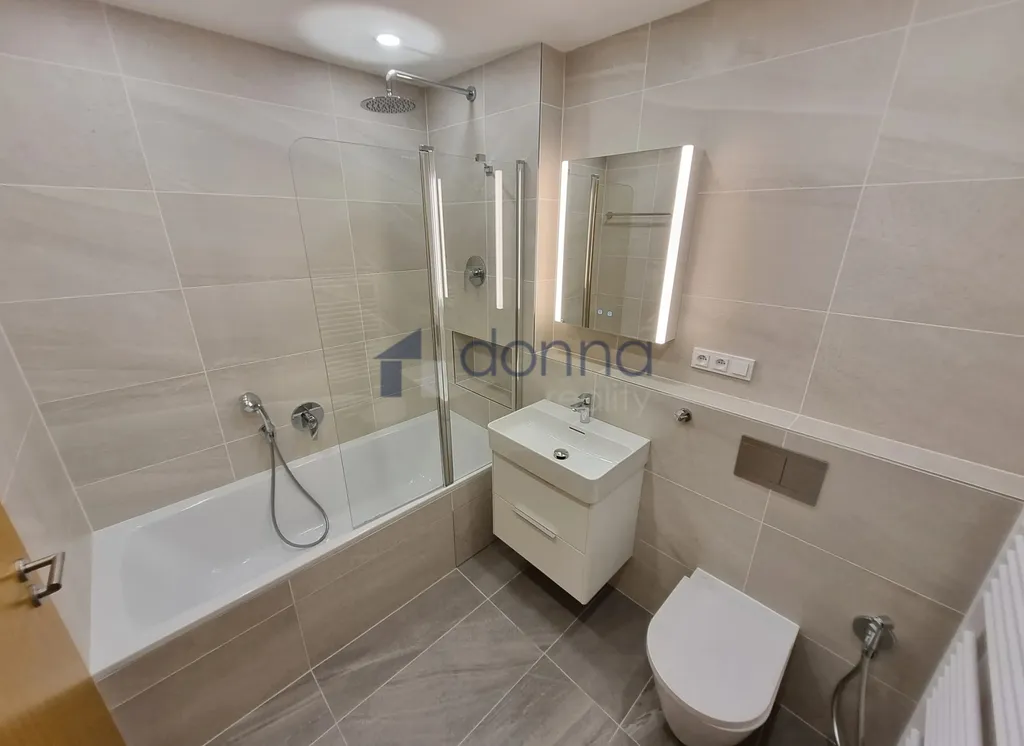 Byt je vybaven novou kuchyňskou linkou se spotřebiči WHIRLPOOL (lednice s mrazákem, myčka, mikrovlnná trouba, indukční varná deska a digestoř), moderními designovými LED svítidly v celém bytě, stmívatelné osvětlení v ložnici a v obývacím pokoji, v koupelně je vana, toaleta s bidetovou sprchou. Dřevěné podlahy a dlažba. Okna jsou vybavena venkovními žaluziemi.
