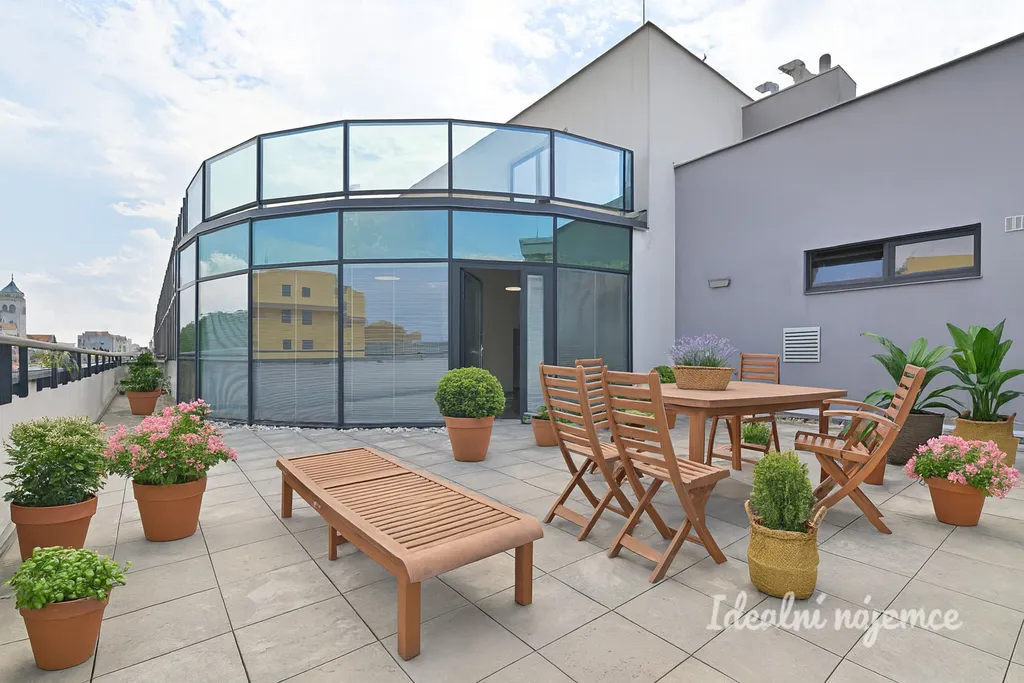K prodeji nabízíme ateliér o dispozici 3+kk s celkovou plochou 144,8 m², umístěný v 5. patře cihlového domu s výtahem. Samotná podlahová plocha činí 77,8 m², k jednotce dále náleží sklep o velikosti 14 m², terasa o výměře 62 m² a také parkovací stání v garáži, které je již zahrnuto v ceně.