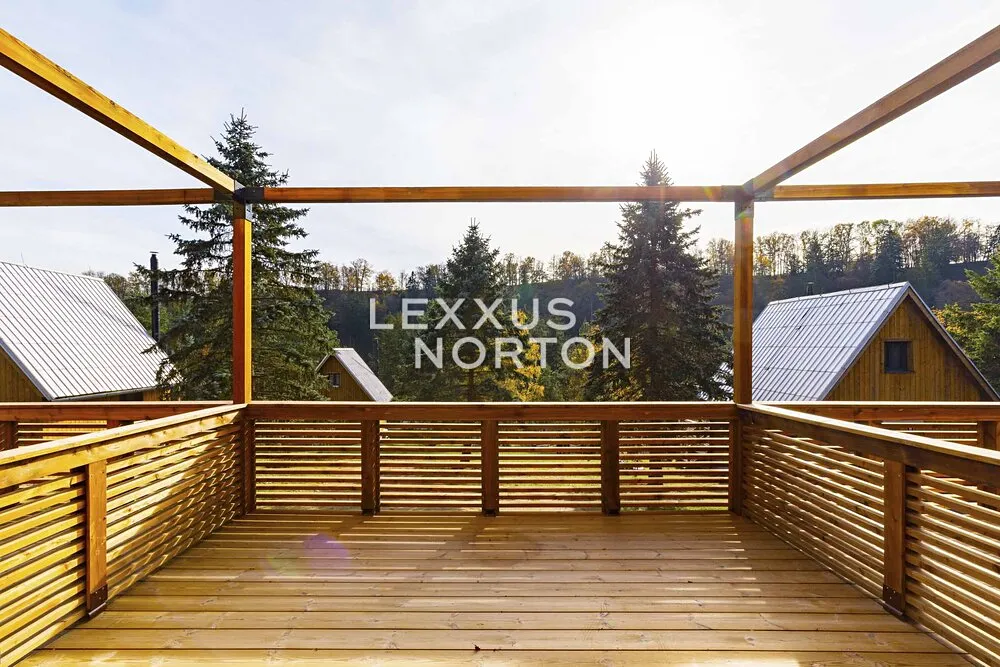 Každý apartmán s obytnou plochou 47,6 m² je navržen tak, aby nabízel maximální komfort pro krátkodobé i dlouhodobé pobyty. V přízemí se nachází obývací prostor s kuchyňským koutem, koupelnou a přímým vstupem na terasu s výhledem na okolní lesy. Pod terasou je uzamykatelný prostor o výměře 11 m². Horní patro pak nabízí 2 prostorné ložnice. Moderní koupelna a stylový interiér zajišťují vysoký standard rekreačního bydlení. Apartmány jsou vybaveny kamny, klimatizací, kuchyňskou linkou. K využití je společná zahrada.