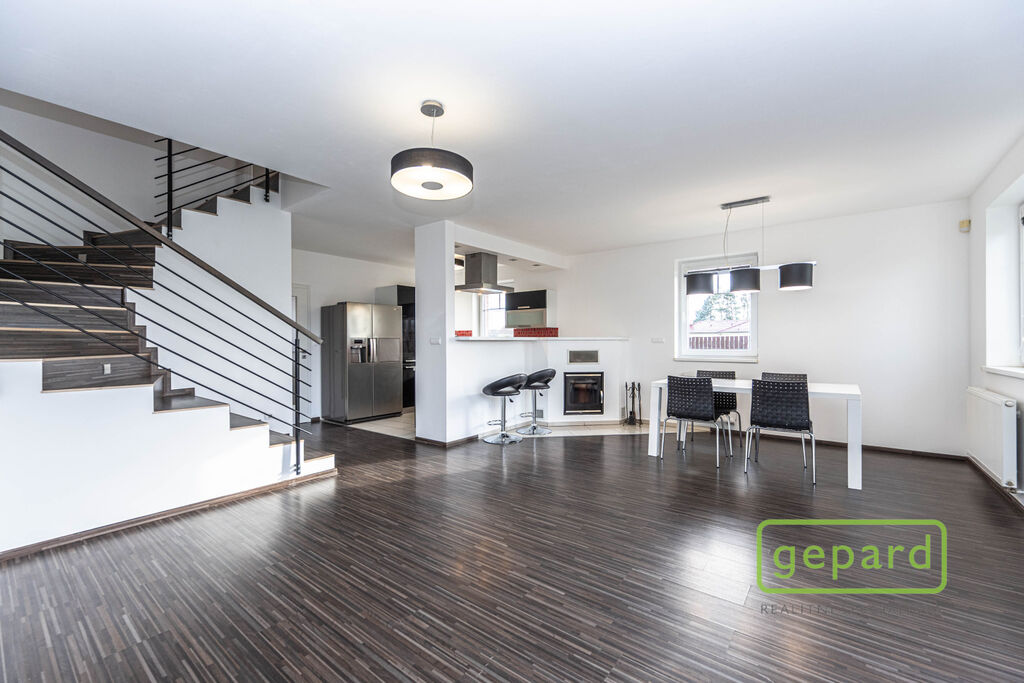 Společnost Gepard Reality nabízí k dlouhodobému pronájmu prostorný rodinný dům 5+kk v klidné části Prahy 10 - Hájek u Uhříněvsi. Jedná se o krajní dům v zástavbě rodinných domů hned vedle cyklostezky v naprostém klidu a s výbornou dopravní dostupností autem i MHD.