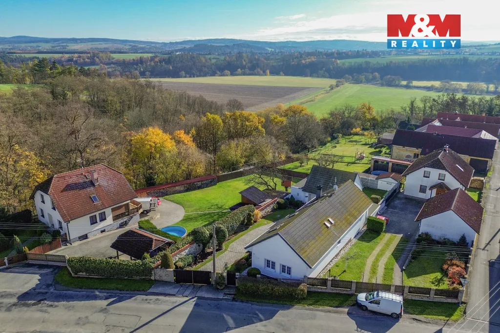 Velkou výhodou je hospoda s odděleným vchodem, prostorná garáž o výměře 91 m2, pergola pro příjemné posezení a venkovní bazén.