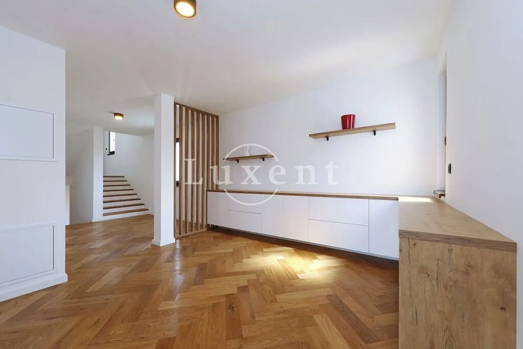 Při výstavbě byly použity nejkvalitnější materiály, interiér i nábytek jsou sladěny v nadčasovém stylu s důrazem na detaily a komfort. Každá místnost je vybavena podlahovým vytápěním a klimatizací, což zaručuje pohodlí po celý rok. Venkovní parkování pojme více vozidel a v dvojgaráži je dostatek prostoru pro další dvě auta.