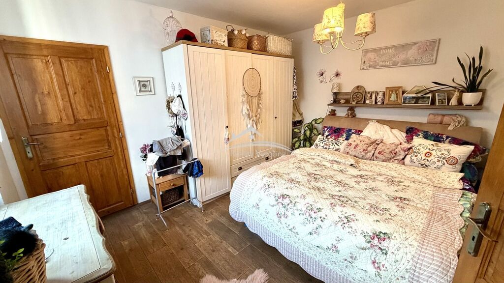 Obývací pokoj je otevřený směrem ke kuchyni a jídelně a působí velmi útulně a stylově. Kuchyňská linka je prostorná, moderní a vybavená vestavěnými spotřebiči – sklokeramickou varnou deskou, troubou, myčkou, digestoří a lednicí s mrazákem. Dům je napojen na všechny inženýrské sítě – elektřinu, plyn, vodovod i kanalizaci. Na zahradě se navíc nachází vlastní studna s užitkovou vodou vhodnou k zalévání.