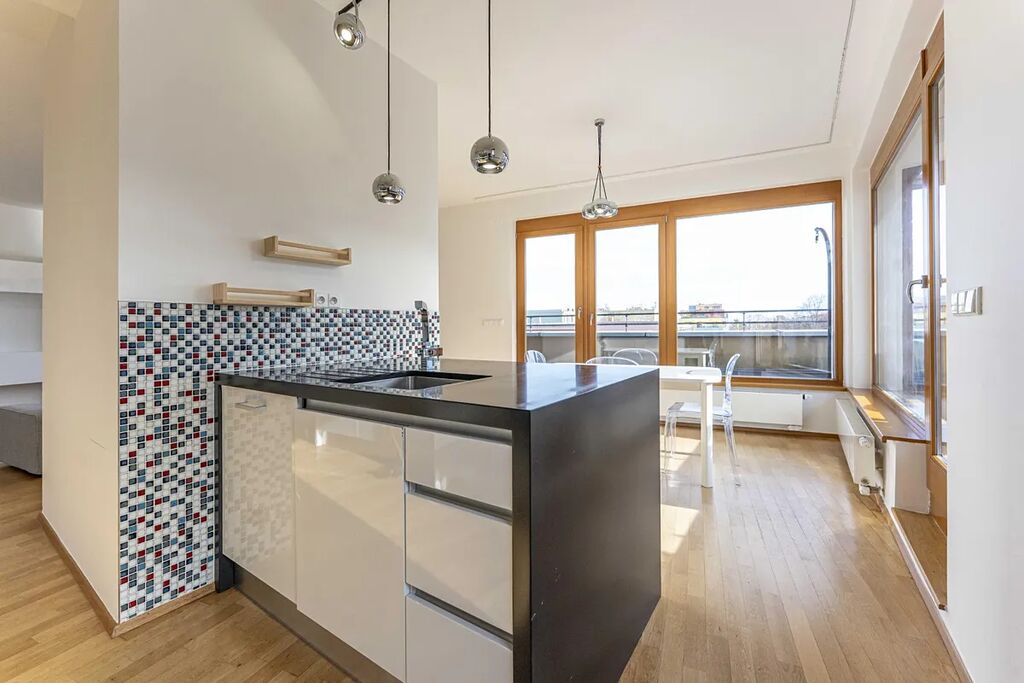Byt je velmi světlý, s velkými francouzskými okny s převážně východní a jižní orientací. Terasa (cca 68 m2 ) je dostupná z každého pokoje.