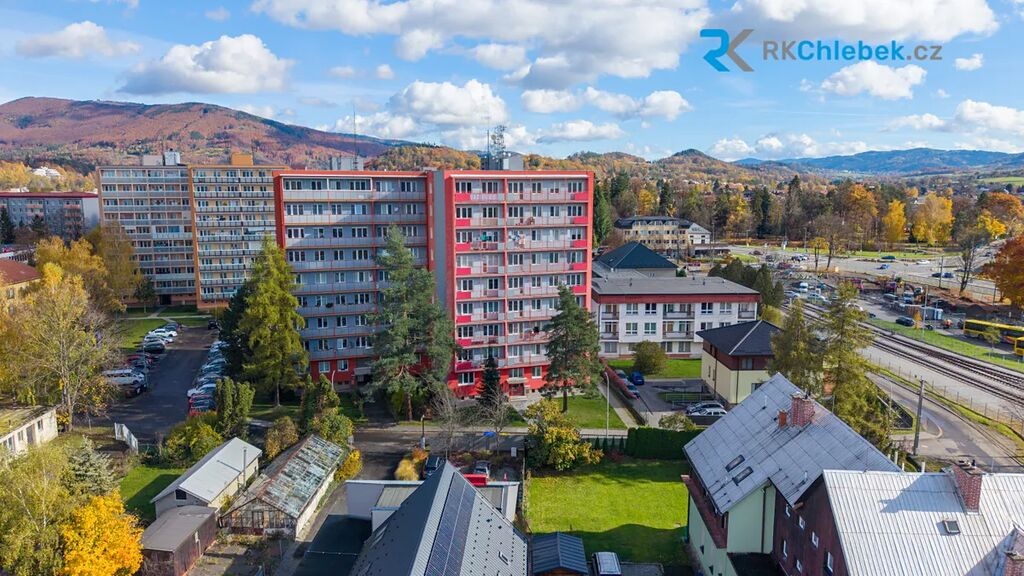 Nachází se v klidné ulici 1. máje a nabízí balkon přístupný ze dvou pokojů, moderní výtah, sklep a skvělou dostupnost veškeré občanské vybavenosti.