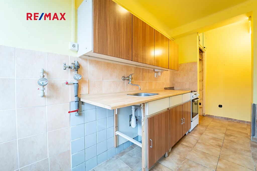 Součástí bytu je kuchyňská linka, plynový sporák s elektrickou troubou, vestavěná skříň na chodbě a sklepní kóje 1,9 m2 v suterénu.