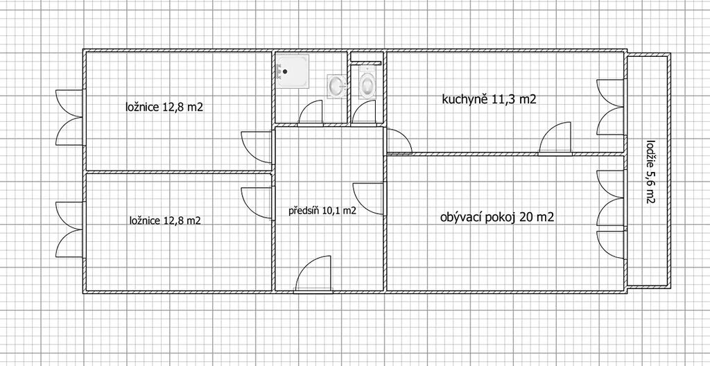 Byt je v původním stavu určený k rekonstrukci podle vašich představ. Je v něm prostorná předsíň se skříněmi a vstupem do všech 4 místností, do koupelna a WC. Obývací pokoj má výměru 20 m2 a francouzské dveře na lodžii (5,6 m2) a je propojený s kuchyní o výměře 11,3 m2. Oba pokoje jsou orientované na západ. Dvě ložnice mají plochu 12.8 m2 a okna na východ do zeleně mezi domy. Bytové jádro je zděné a koupelna prošla nedávno rekonstrukcí. Okna v bytě jsou plastová a na podlahách je původní PVC. Byt je v družstevním vlastnictví a jeho převod do OV se zatím neplánuje. Financování hypotékou je tak možné pouze při ručen jinou nemovitostí.