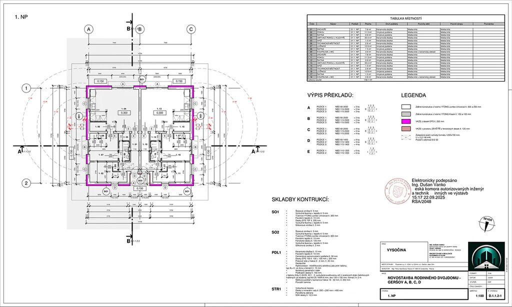 K dispozici jsou půdorysy, pohledy, situace a dokumentace ke stavebnímu povolení.