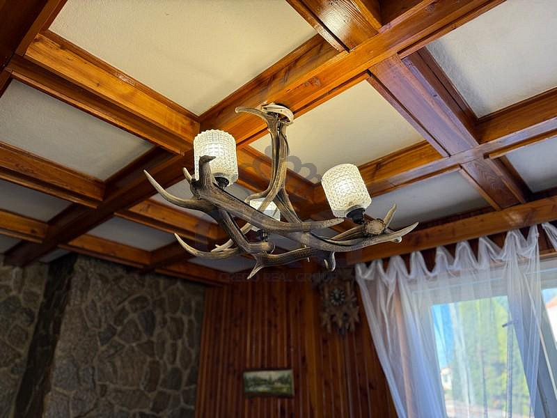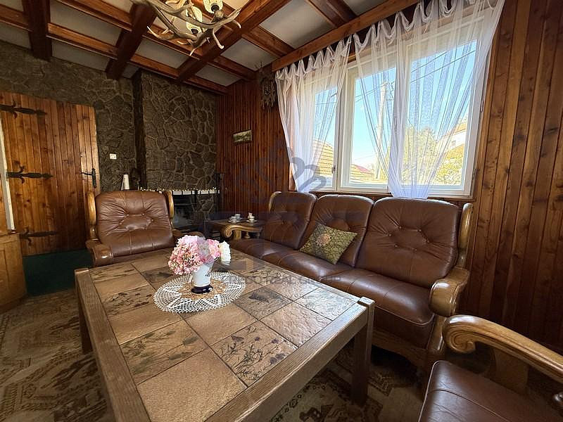Po schodišti vystoupáme do prvního patra chodby o velikosti cca 11,24 m². Na patře jsou dvě místnosti, z toho jedna je vybavena krásným funkčním krbem o celkové výměře 15,20 m². Tato místnost je plně vybavena nábytkem. Druhá místnost má celkovou plochu cca 17,26 m². V přízemí vedle schodiště nalezneme sklep o výměře cca 4,80 m².
