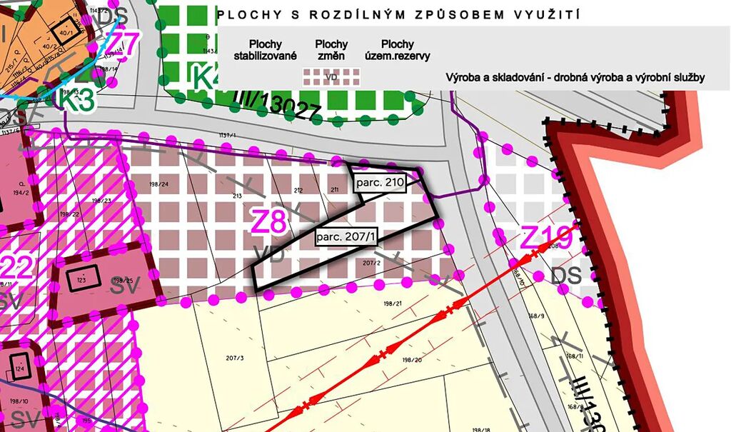 Pozemky jsou dle územního plánu obce určeny pro výrobu a skladování – konkrétně pro stavby a zařízení drobné výroby, provozování služeb nebo skladování. Jejich výhodná poloha u křižovatky dvou zpevněných cest zajišťuje velmi dobrý přístup, přičemž celé území se nachází v rovinatém terénu. Obec Hořice má navíc vynikající dopravní dostupnost, nachází se v blízkosti dálnice D1.