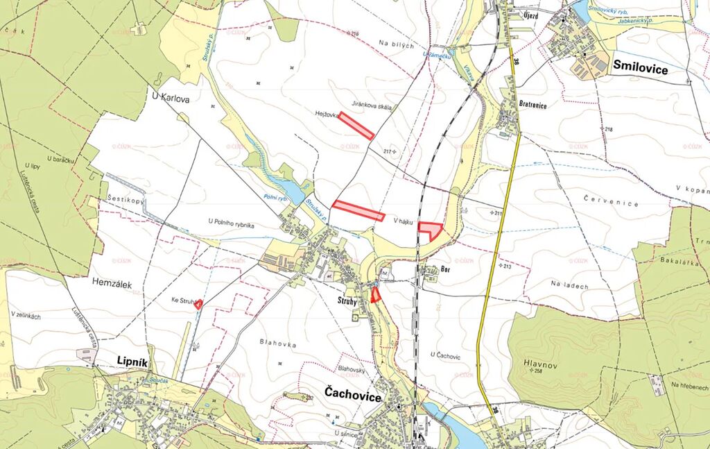 Pozemky jsou zapsány v katastrálních územích Lipník a Struhy.