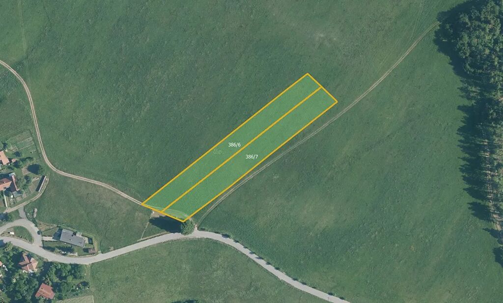Jedná se o parcely č. 386/6 a 386/7 o celkové výměře 8 348 m². Prodávaná výměra je zde 2 504 m². Obě parcely jsou vedeny jako orná půda. Jsou položeny v rovině a přístupné po zemědělské cestě.