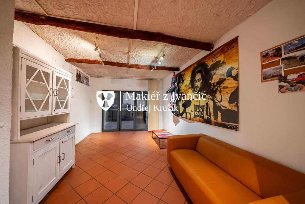 Přízemí je podélně rozděleno na vstup do komerční části s odděleným vstupem, a do samotné obytné části. Komerční část je zkolaudovaná jako provozovna, má vlastní sociální zařízení a díky blízkosti centra může poskytnou zázemí službám jako jsou kavárny, administrativní kanceláře, kosmetika, menší obchod, ordinace, nebo třeba soukromá dílna. Zároveň se zde nachází vstup na zahradu a do původního vinného sklepa.