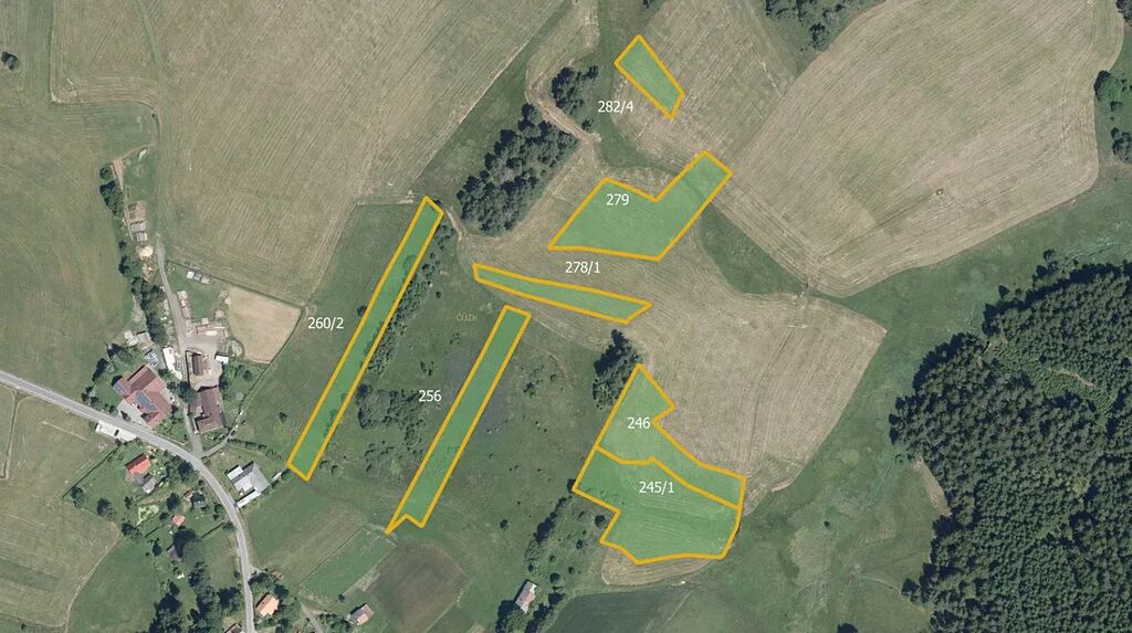 Předmětem prodeje je 10 parcel, konkrétně parc. č. 92, 93, 99, 245/1, 246, 256, 260/2, 278/1, 279 a 282/4 o celkové výměře 26 815 m².