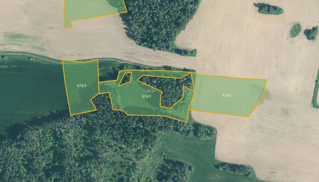 orná půda: parc. č. 674/1, 674/3 – celkem 13 567 m²