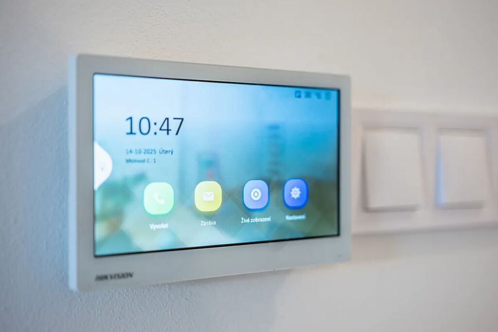 Dům nabízí také podlahové vytápění napojené na tepelné čerpadlo, plastová okna s trojskly a jednotný, příjemný design v tónu světlého dubu.