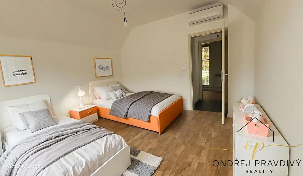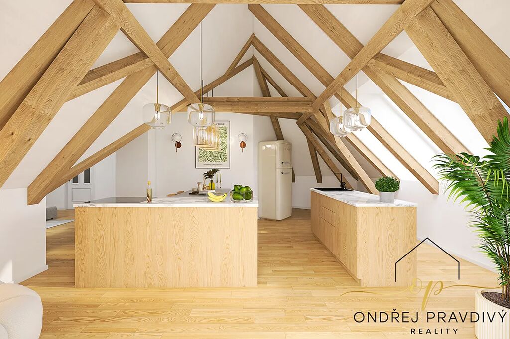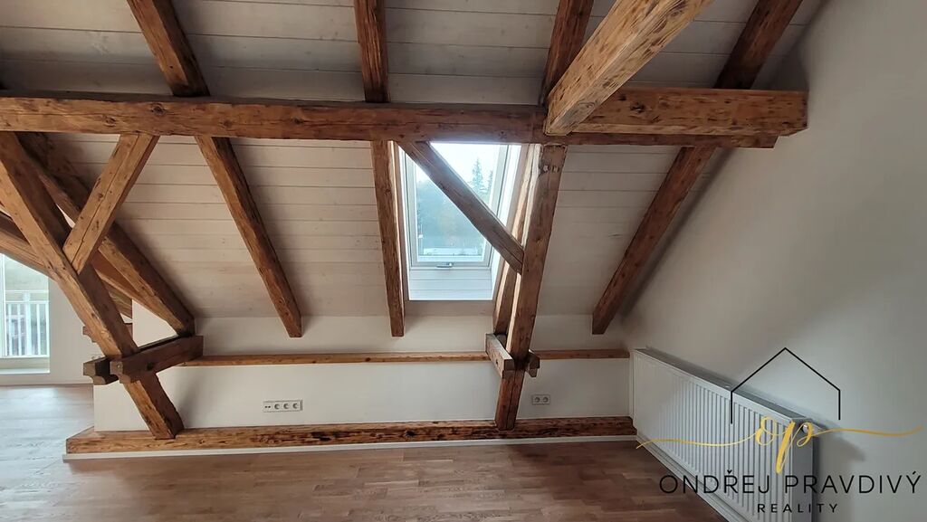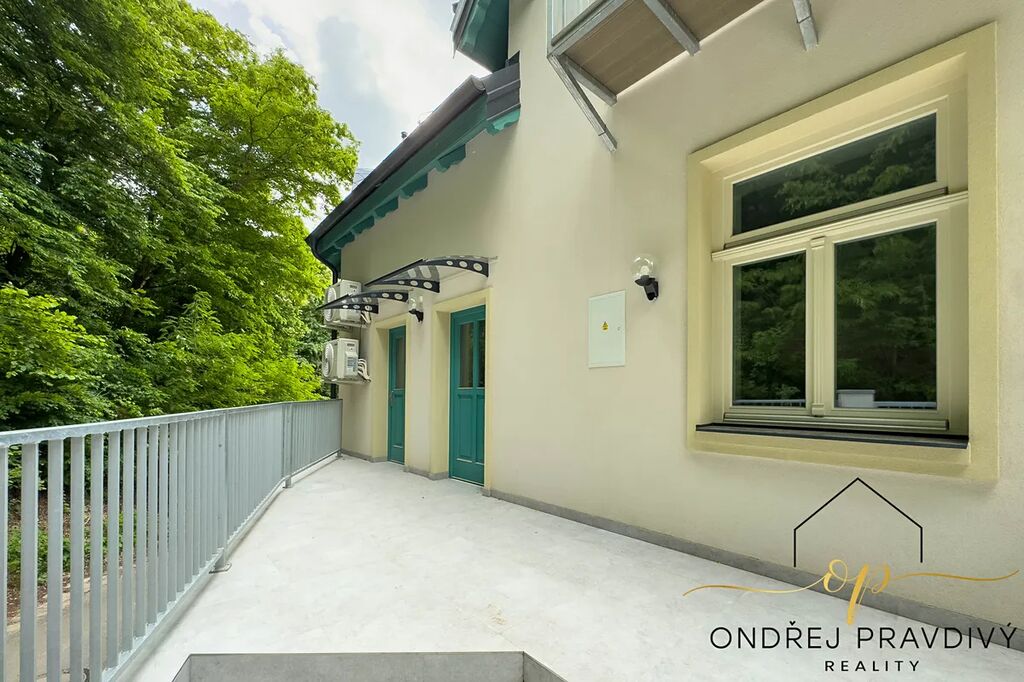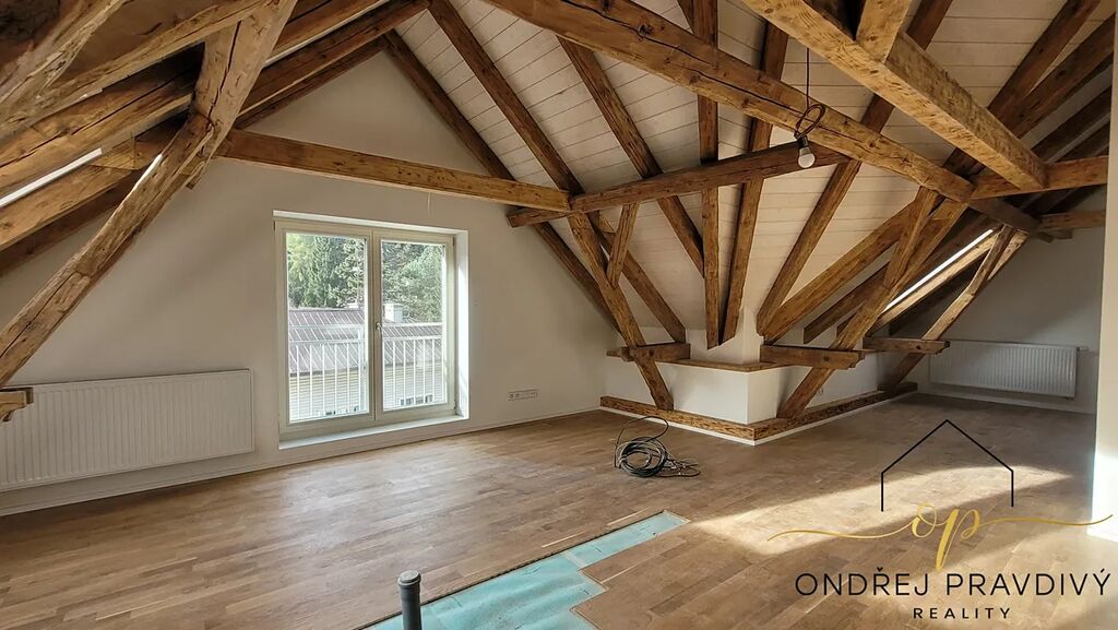 Byt se nachází v posledním 3. nadzemním podlaží a po kompletní přestavbě se může pyšnit nadstandardní kvalitou provedení a použitých materiálů. Provedení zahrnuje dřevěné plovoucí podlahy, dřevěná euro okna s trojskly, designové dlažby a nadčasové obklady. Značková sanita firem Laufen a Hansgrohe. Dále jsou datové rozvody, příprava na zabezpečení a elektromobilitu. Díky zateplení celého domu i vlastnímu kondenzačnímu kotli pro vytápění a ohřev vody budou provozní náklady skutečně příznivé. Převažující orientace na jiho-západ zajišťuje dostatek slunečního světla a stropy s přiznaným trámovím zase útulný pocit s puncem historie. Příslušenství bytu zahrnuje do zeleně orientovaný balkón, vlastní parkovací stání a prostorný sklep 11 m² na jakékoliv sportovní či sezónní vybavení. Další úložné prostory jsou v půdě nad bytem.