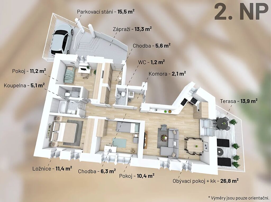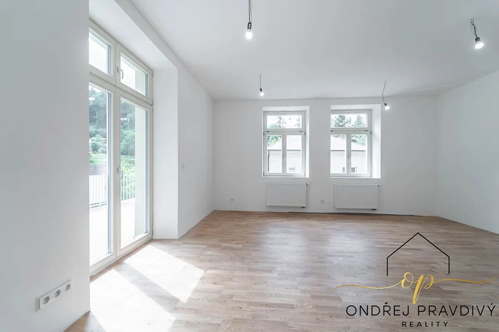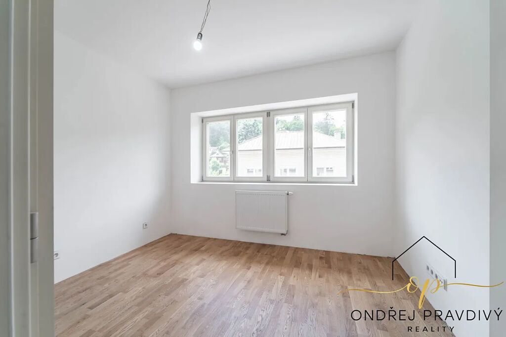 Byt se nachází ve 2. nadzemním podlaží a po kompletní přestavbě domu se může pyšnit nadstandardní kvalitou provedení a použitých materiálů. Provedení zahrnuje dřevěné plovoucí podlahy, dřevěná euro okna s trojskly, designové dlažby a nadčasové obklady. Značková sanita firem Laufen a Hansgrohe. Dále jsou datové rozvody, příprava na zabezpečení a elektromobilitu. Díky zateplení celého domu i vlastnímu kondenzačnímu kotli pro vytápění a ohřev vody budou provozní náklady skutečně příznivé. Orientace na jiho-západ zajišťuje dostatek slunečního světla a vysoké stropy zase pocit vzdušnosti. Příslušenství bytu zahrnuje terasu přístupnou z obývacího pokoje, vlastní parkovací stání a prostorný sklep 11 m² na jakékoliv sportovní či sezónní vybavení.