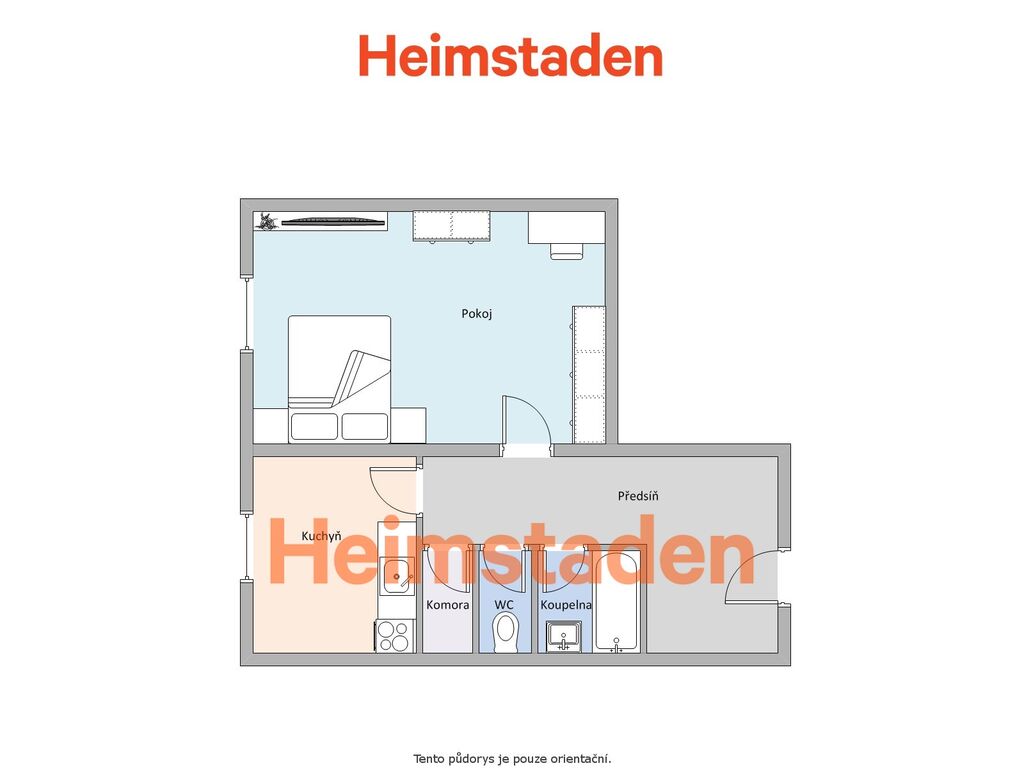 Uvnitř vás přivítá moderní prostor s dvěma samostatnými pokoji, které zdobí krásné plovoucí podlahy, a prostorná hala se světlou dlažbou, kde se nachází i kuchyňský kout. Ten je vybaven vkusnou kuchyňskou linkou a elektrickým sporákem, ideálním pro vaše kulinářské nápady. Koupelna v jemném meruňkovém odstínu s vanou působí teple a útulně – jako stvořená pro relax po náročném dni.